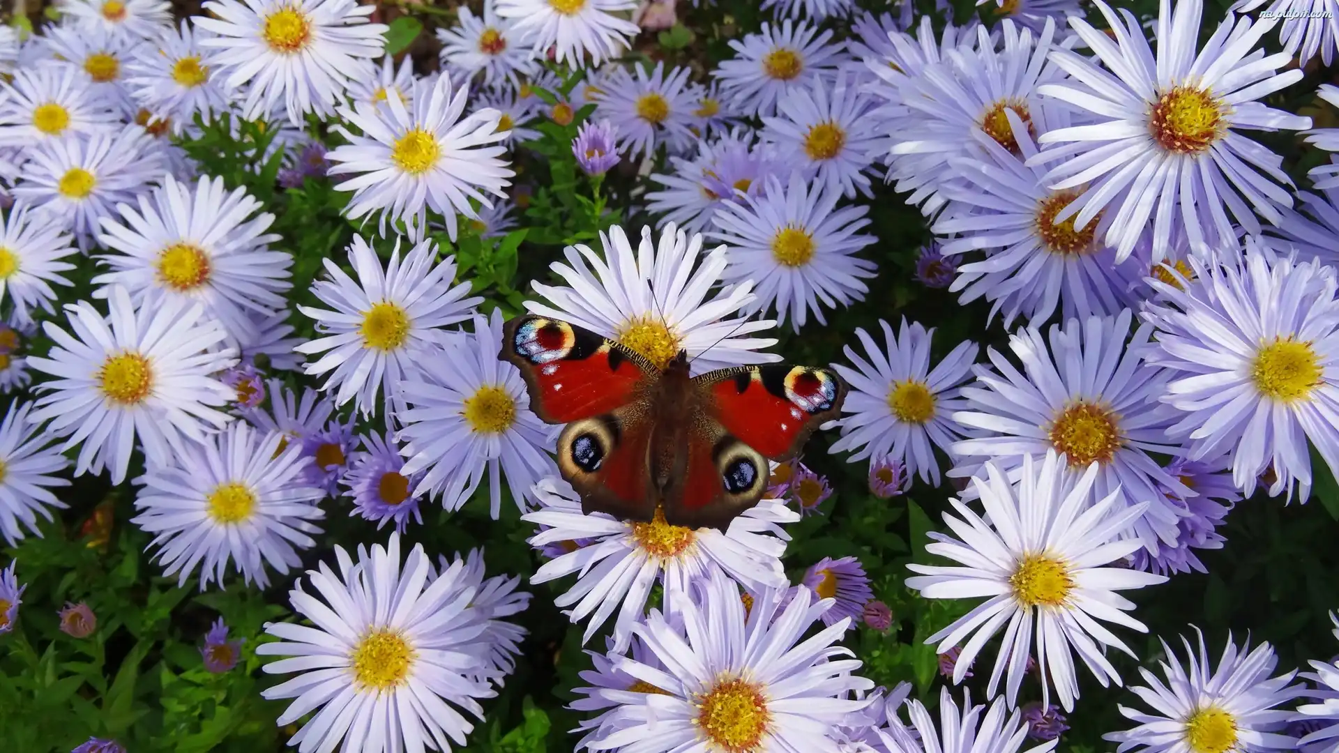 Rusałka pawik, Astry marcinki, Kwiaty, Motyl Na Pulpit