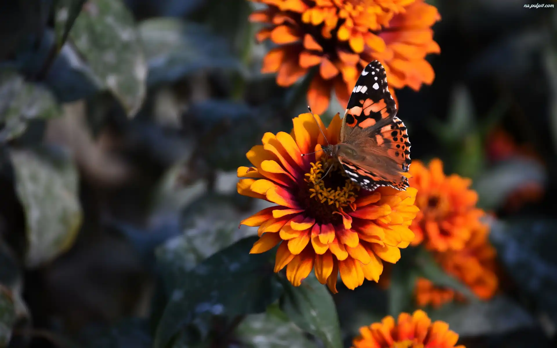 Rusałka osetnik, Cynie, Kwiaty, Motyl Na Pulpit