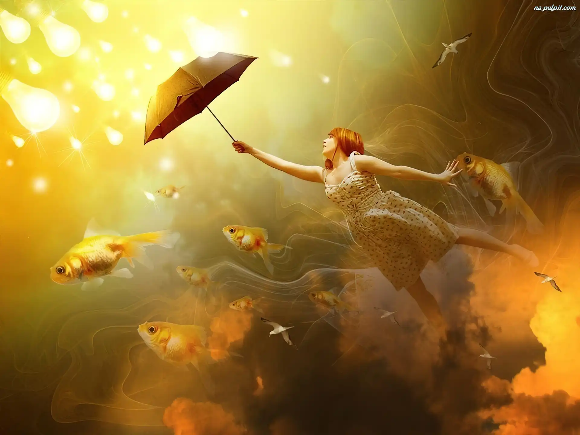 Ryb, Z, Dziewczyna, Parasolem Na Pulpit