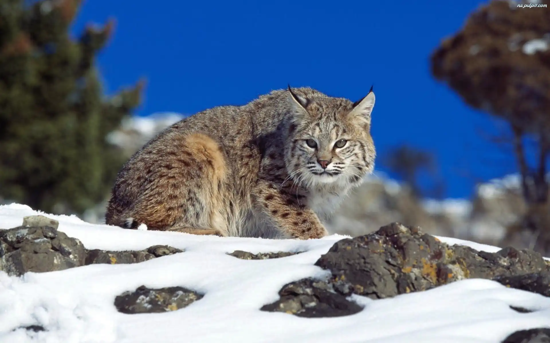 Ryś, Roślinność, Rozmycie, Ośnieżone, Zima, Skały