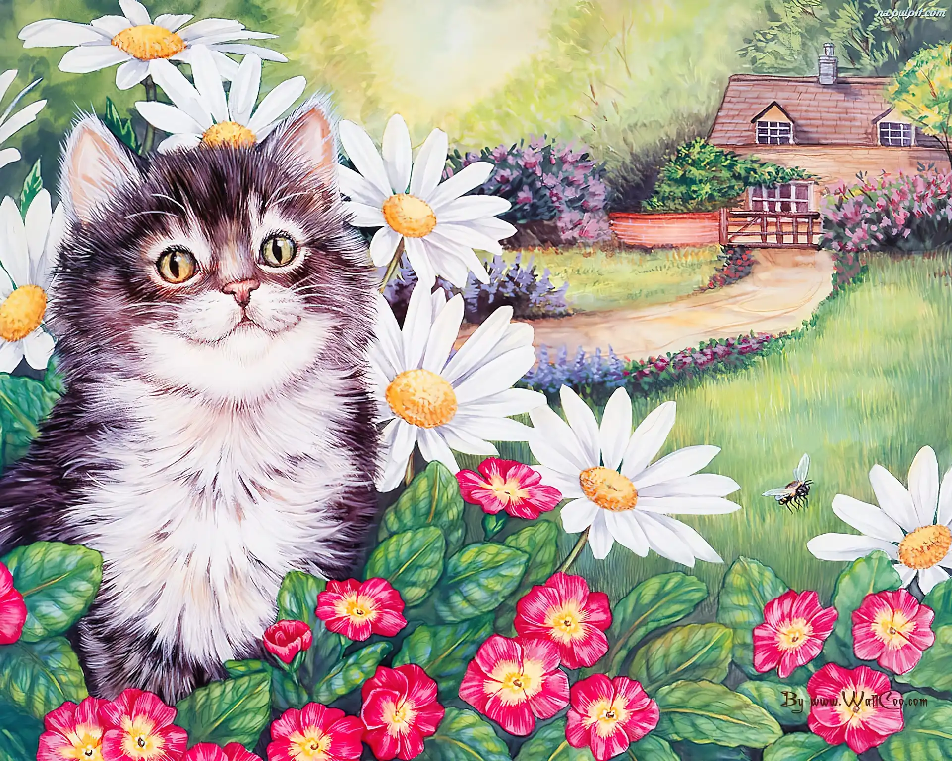 Rysunek, Kwiaty, Kot, Dom Na Pulpit
