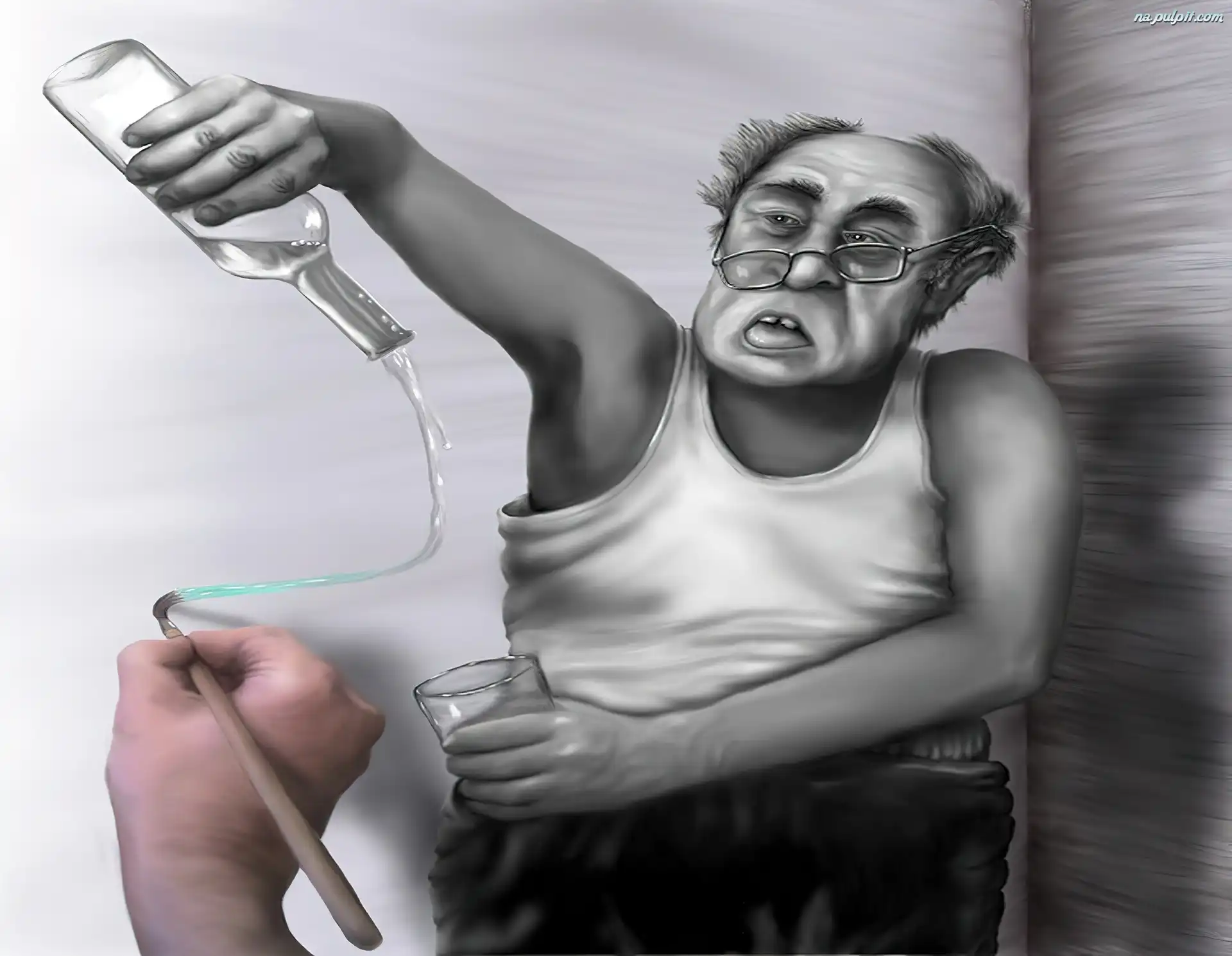 Rysunek, Butelka, Mężczyzna, Alkohol Na Pulpit