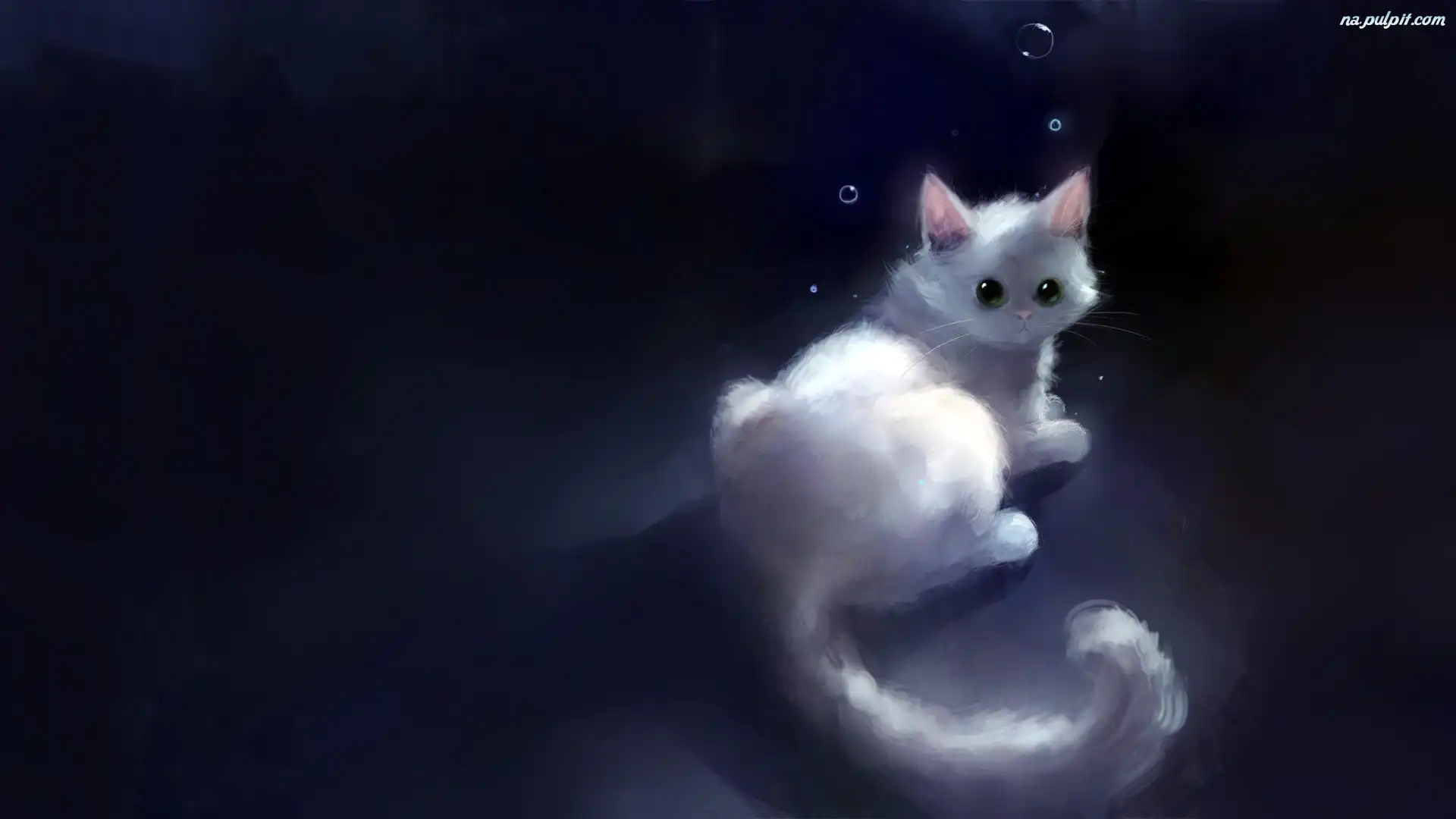 Rysunek, Biały, Słodki, Kotek Na Pulpit
