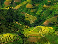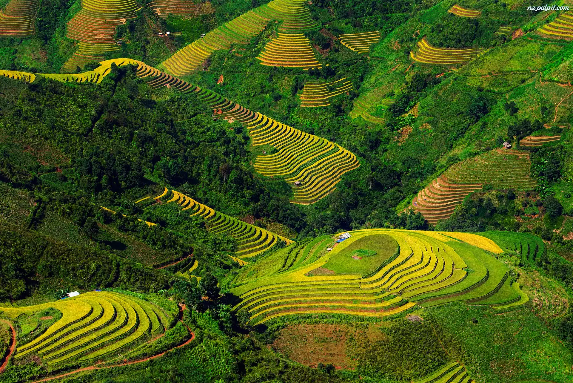 Wzgórza, Pola, Tarasy ryżowe, Wietnam, Góry Na Pulpit