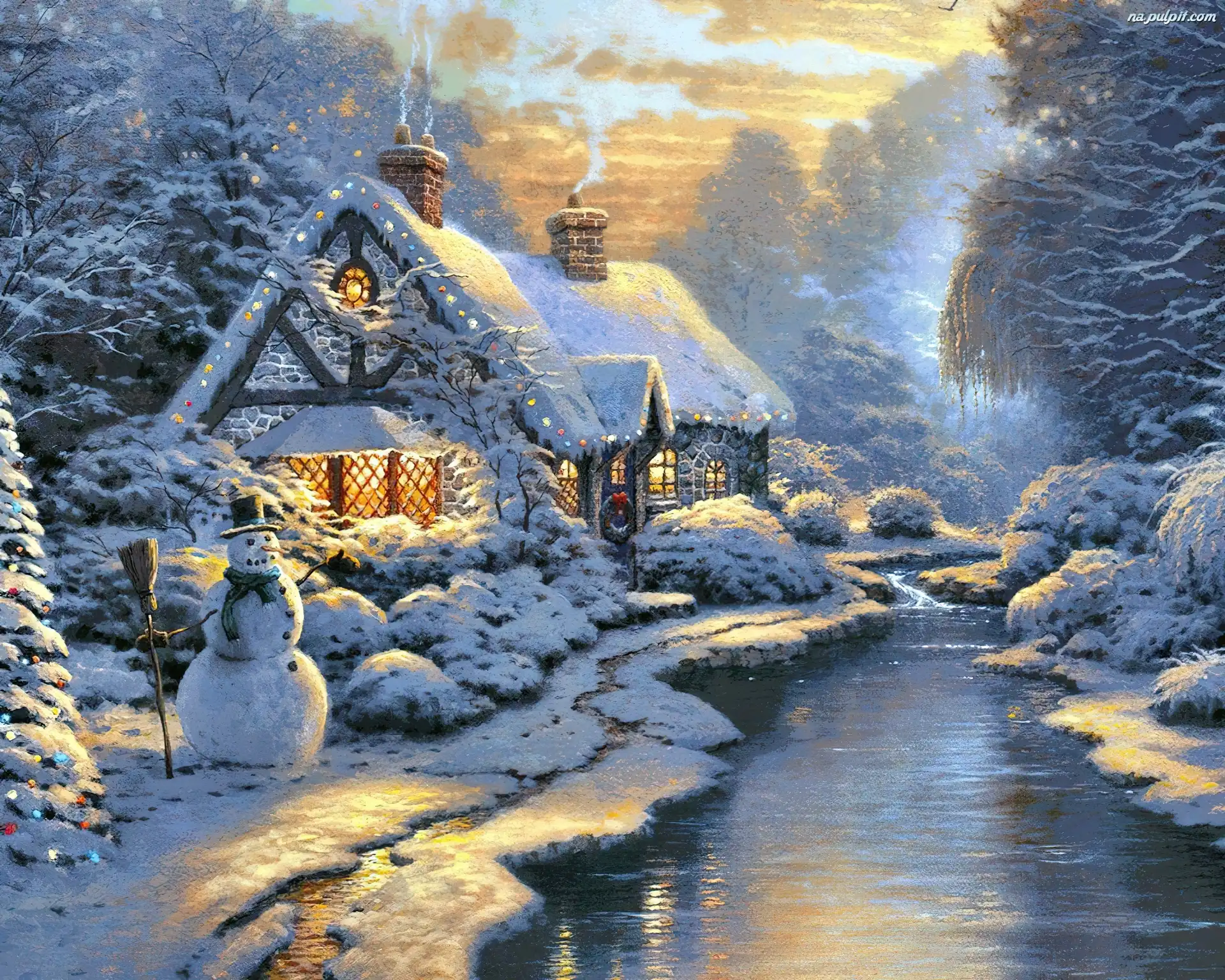 Rzeczka, Bałwan, Dom, Zima Na Pulpit
