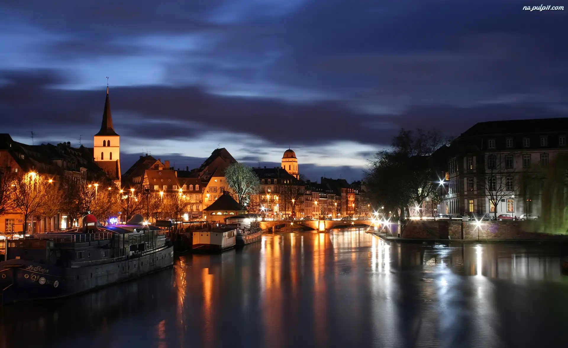 Rzeczny, Nocą, Miasto, Kanał Na Pulpit