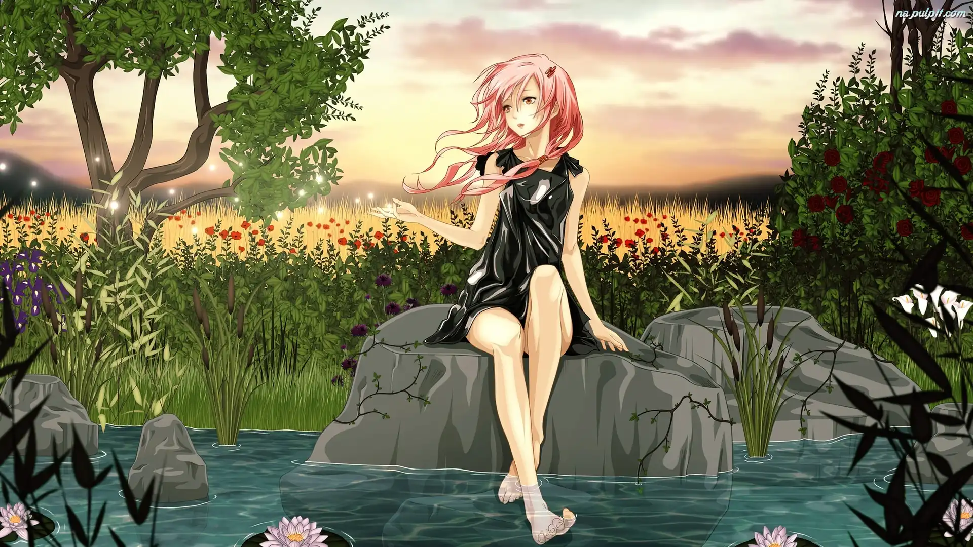 Rzeka, Kobieta, Anime, Kamienie