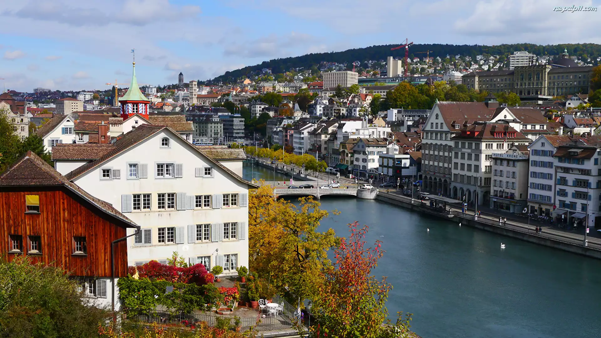 Most, Szwajcaria, Budynek, Rzeka Limmat, Zurych, Drzewa Na Pulpit