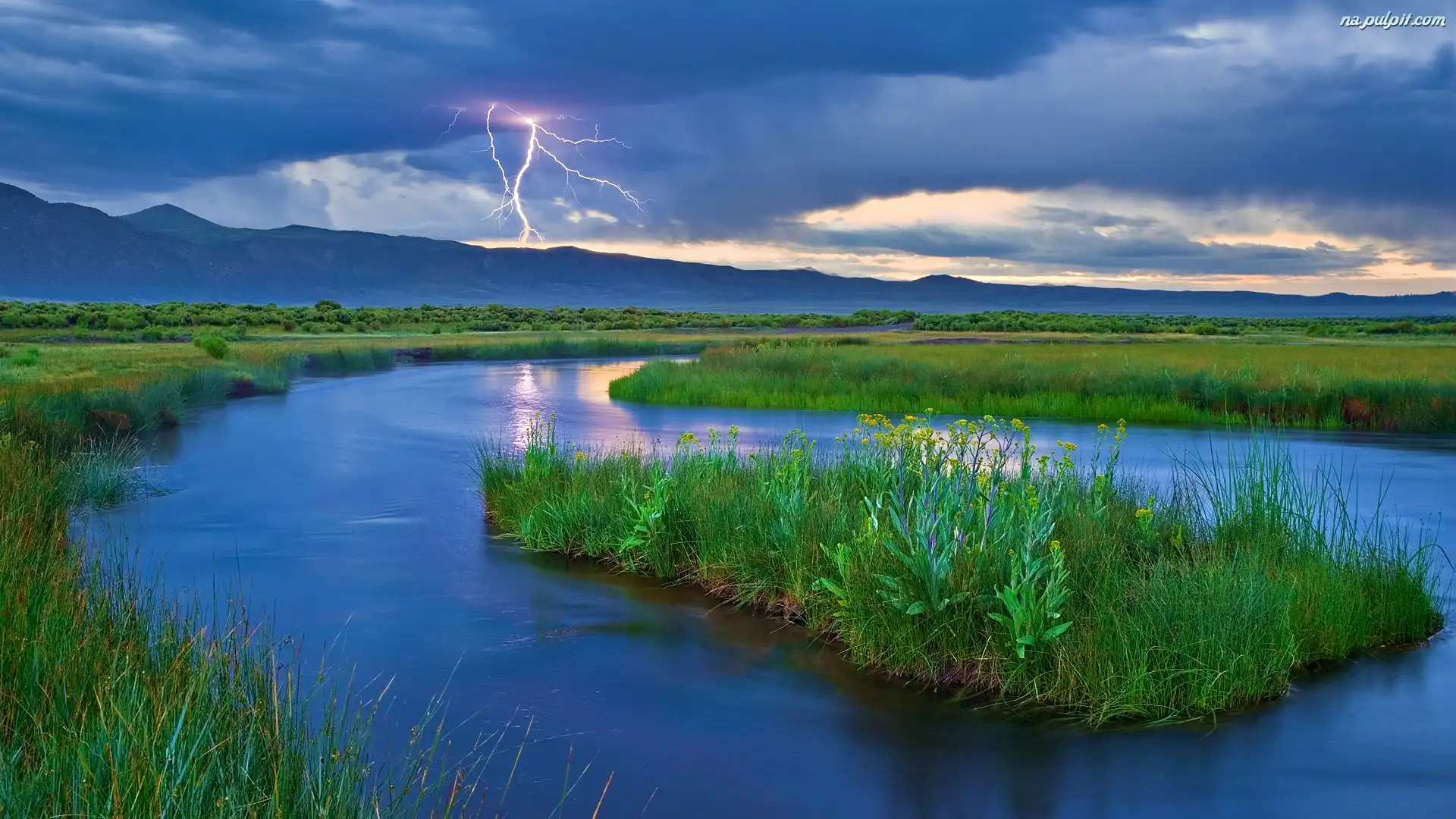 Rzeka, Chmury, Burzowe, Błyskawica Na Pulpit
