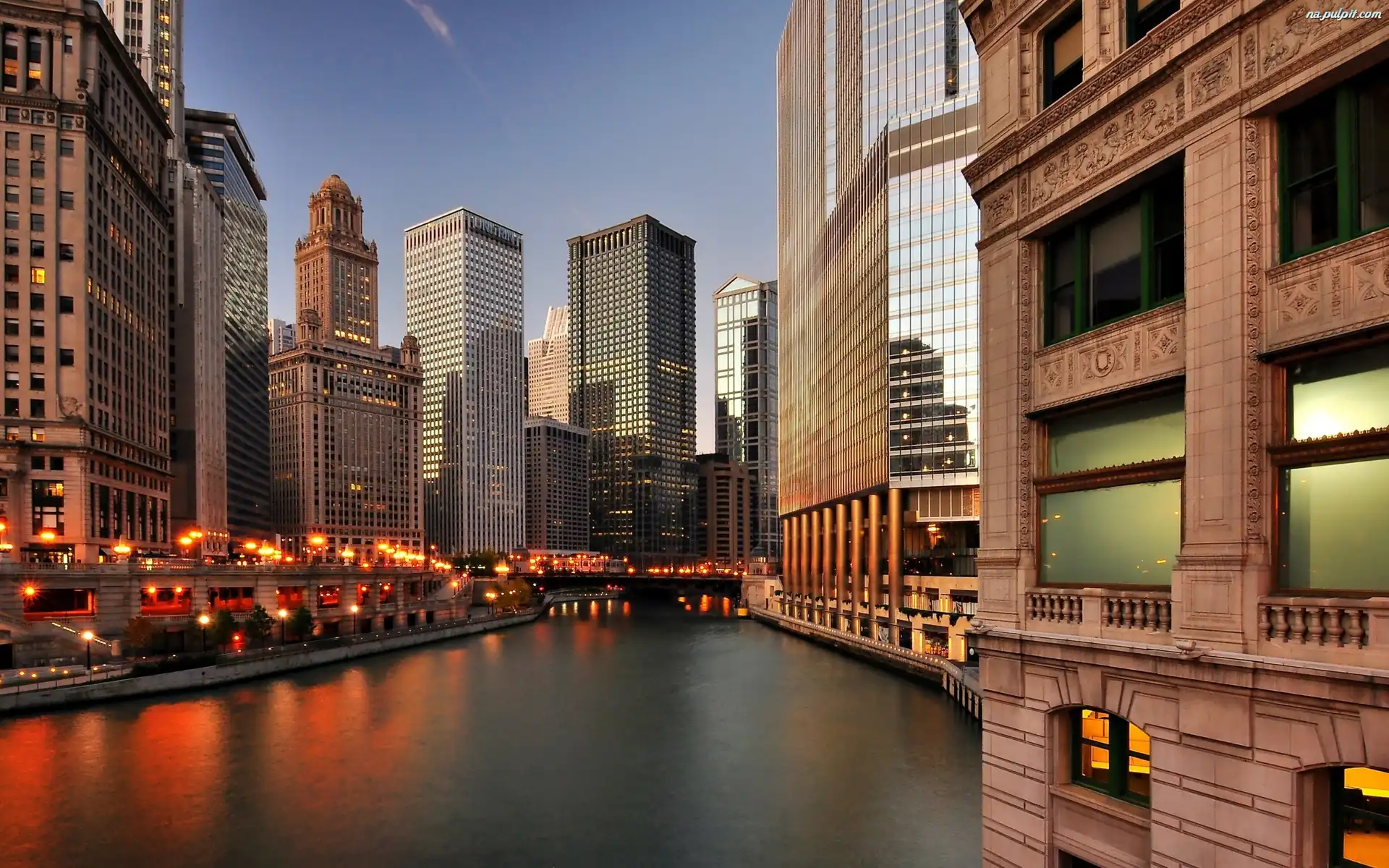 Rzeka, USA, Chicago, Wieżowce Na Pulpit