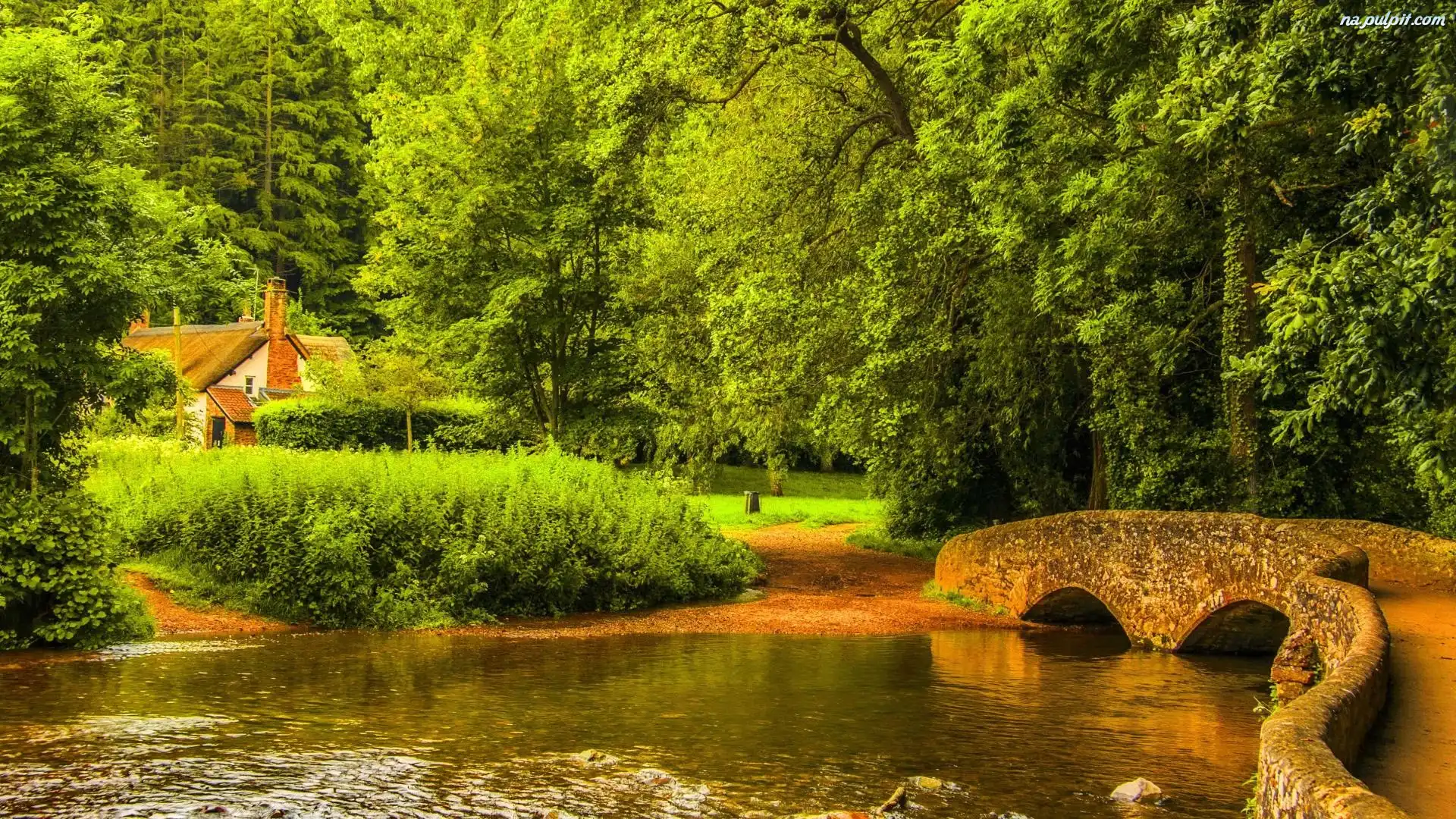 Rzeka, Mostek, Dom, Las Na Pulpit