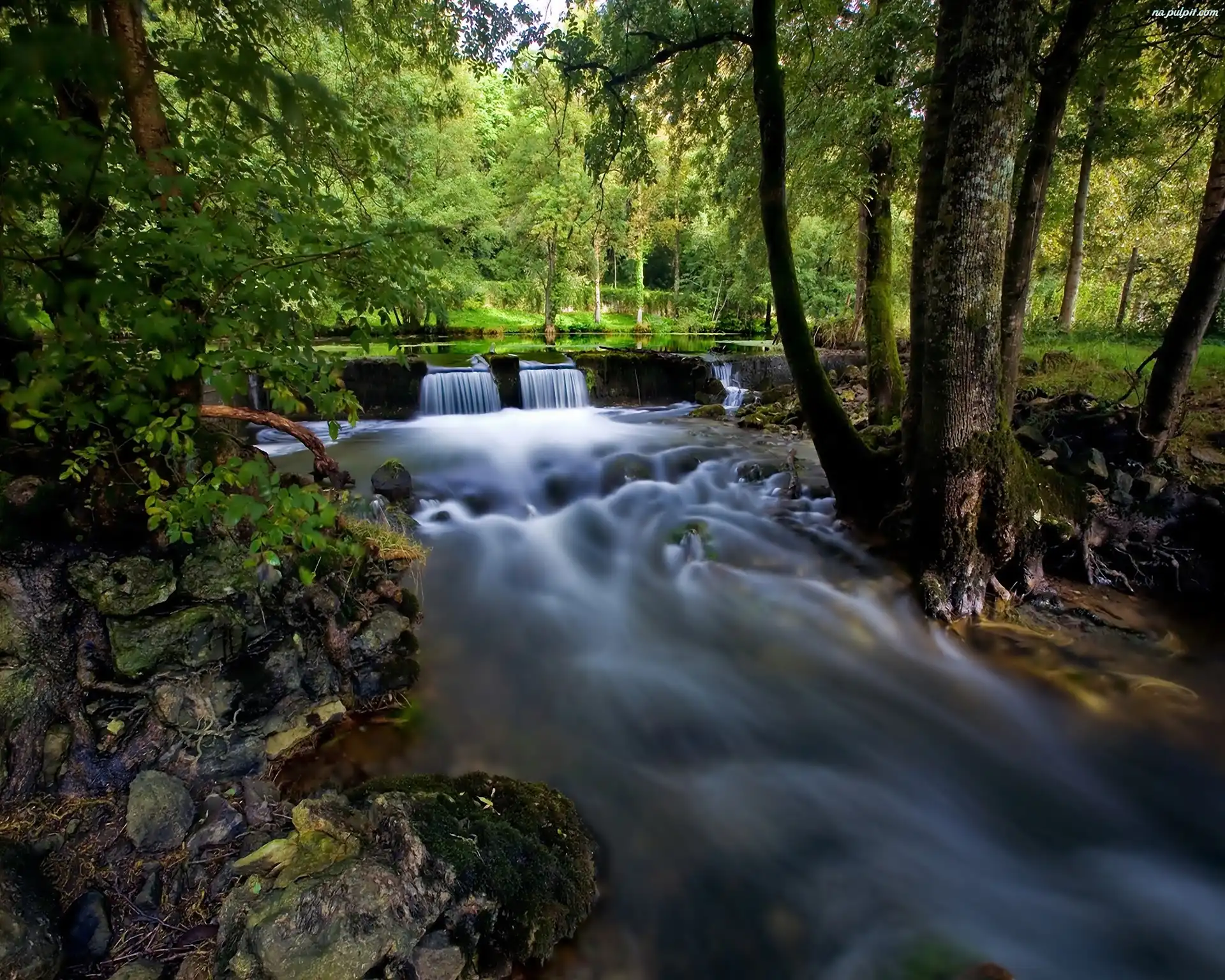Drzewa, Rzeka, Kamienie Na Pulpit