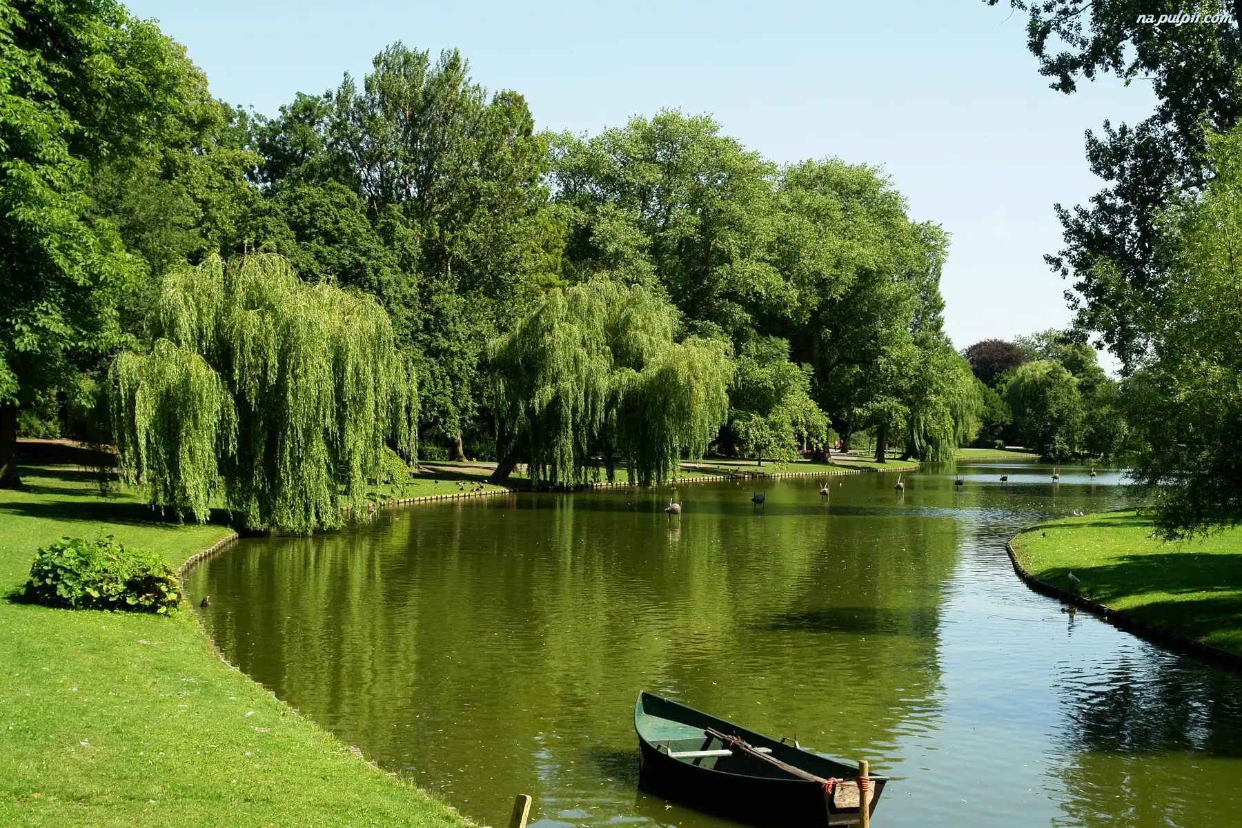 Łódka, Drzewa, Rzeka, Wierzby Na Pulpit