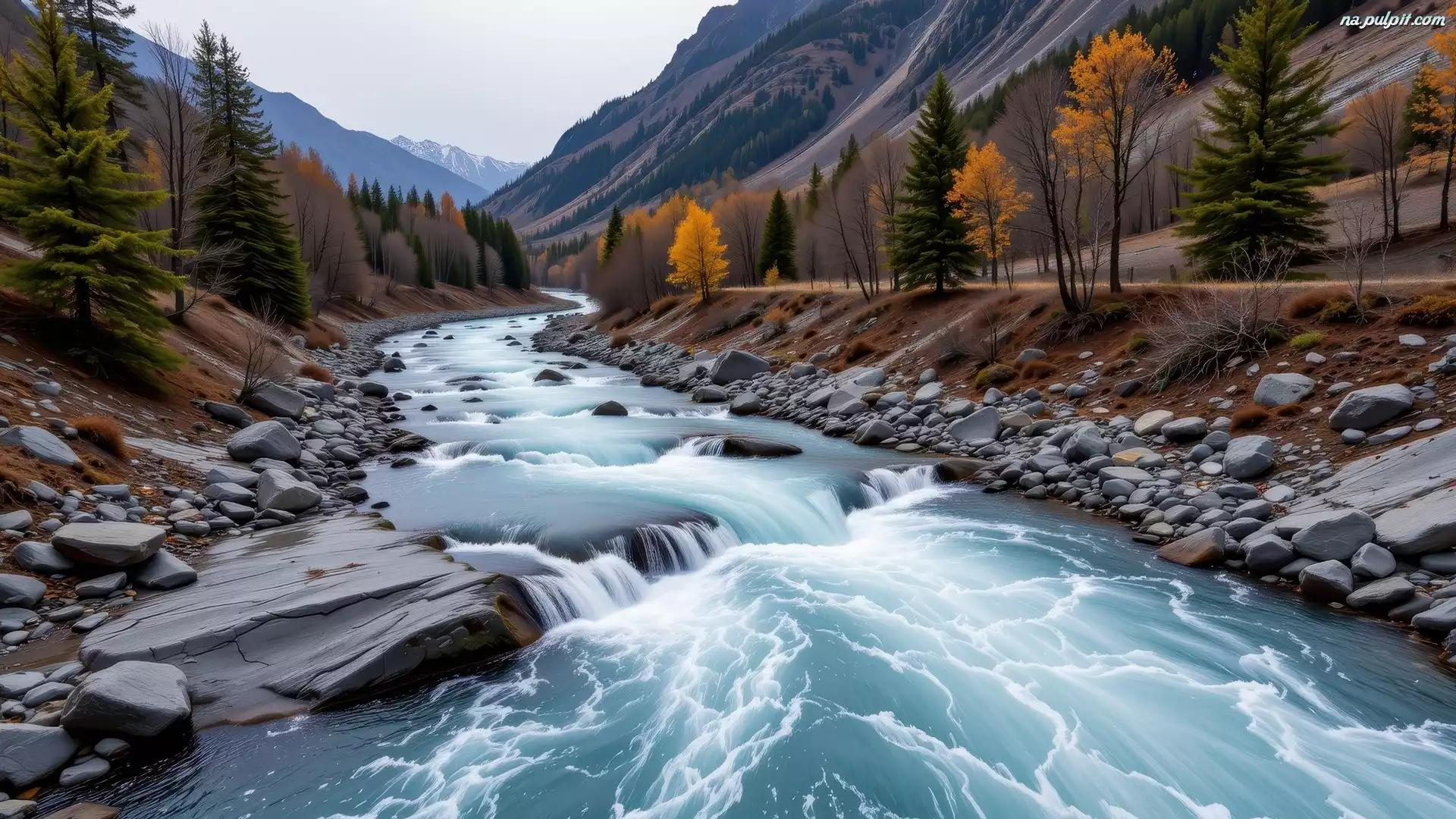 Kamienie, Jesień, Rwąca, Rzeka, Góry, Drzewa Na Pulpit