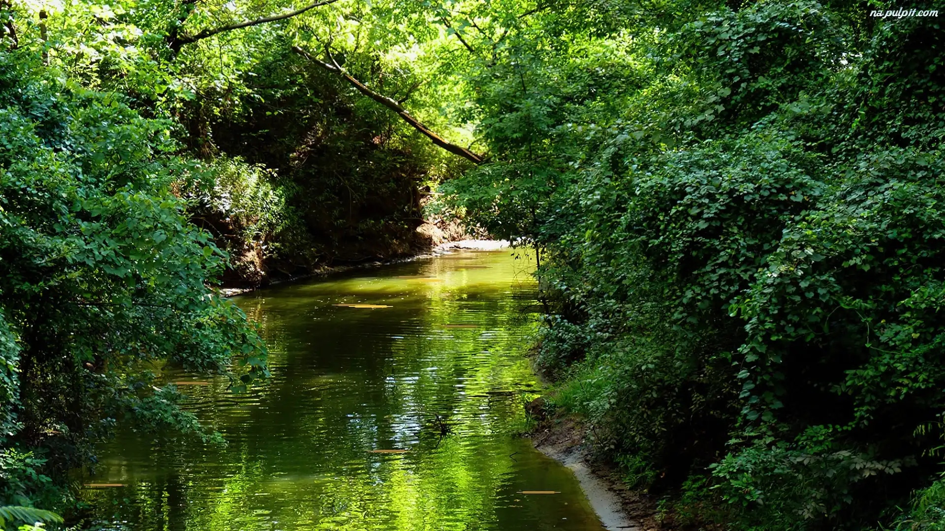 Drzewa, Rzeka, Zarośla Na Pulpit