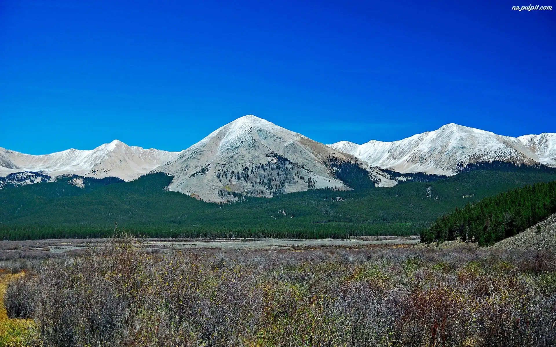 Rzeka, Szczyty, Ośnieżone, Góry, Lasy Na Pulpit