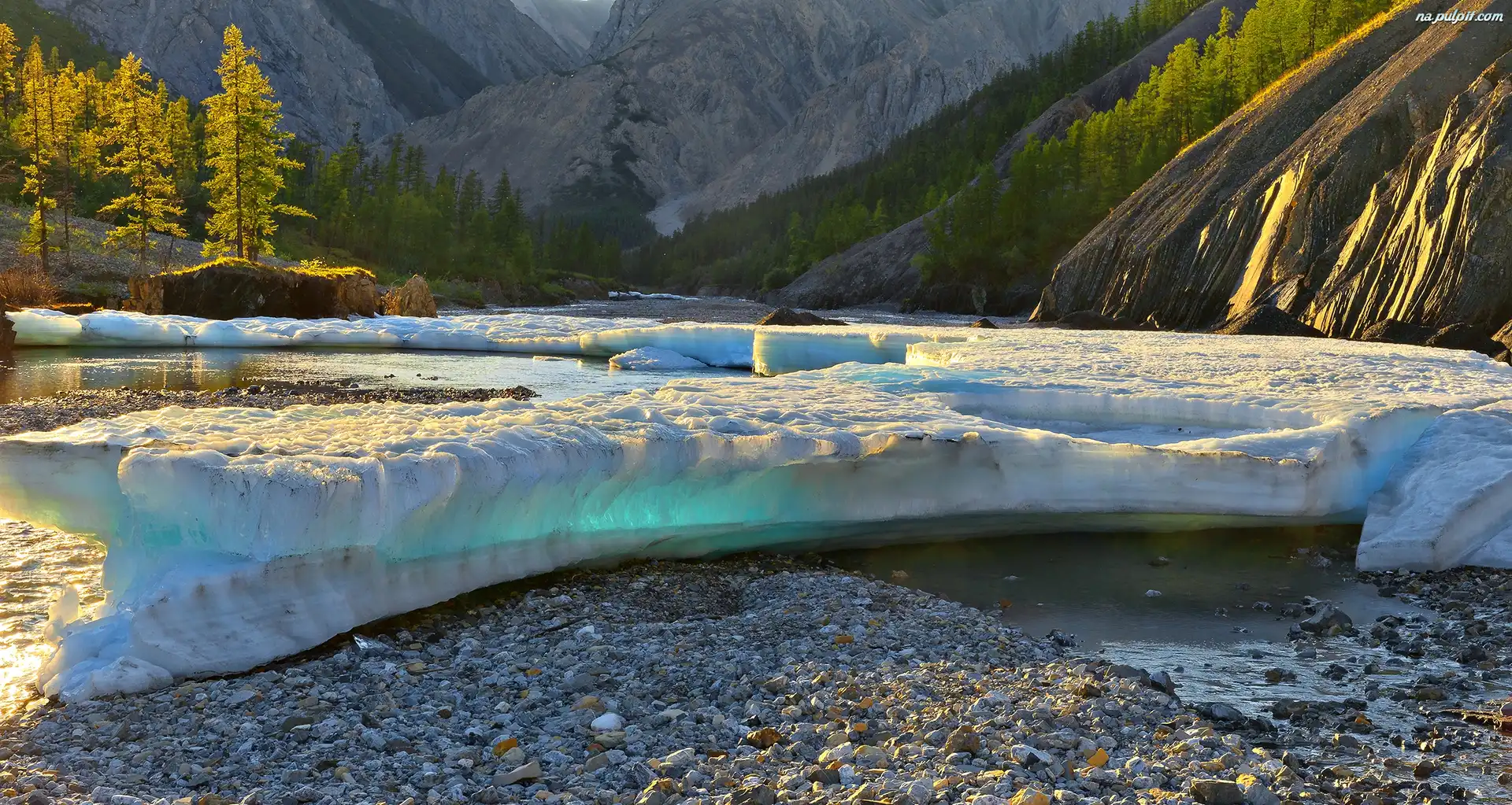 Rzeka, Drzewa, Zima, Lód, Góry, Wąwóz Na Pulpit