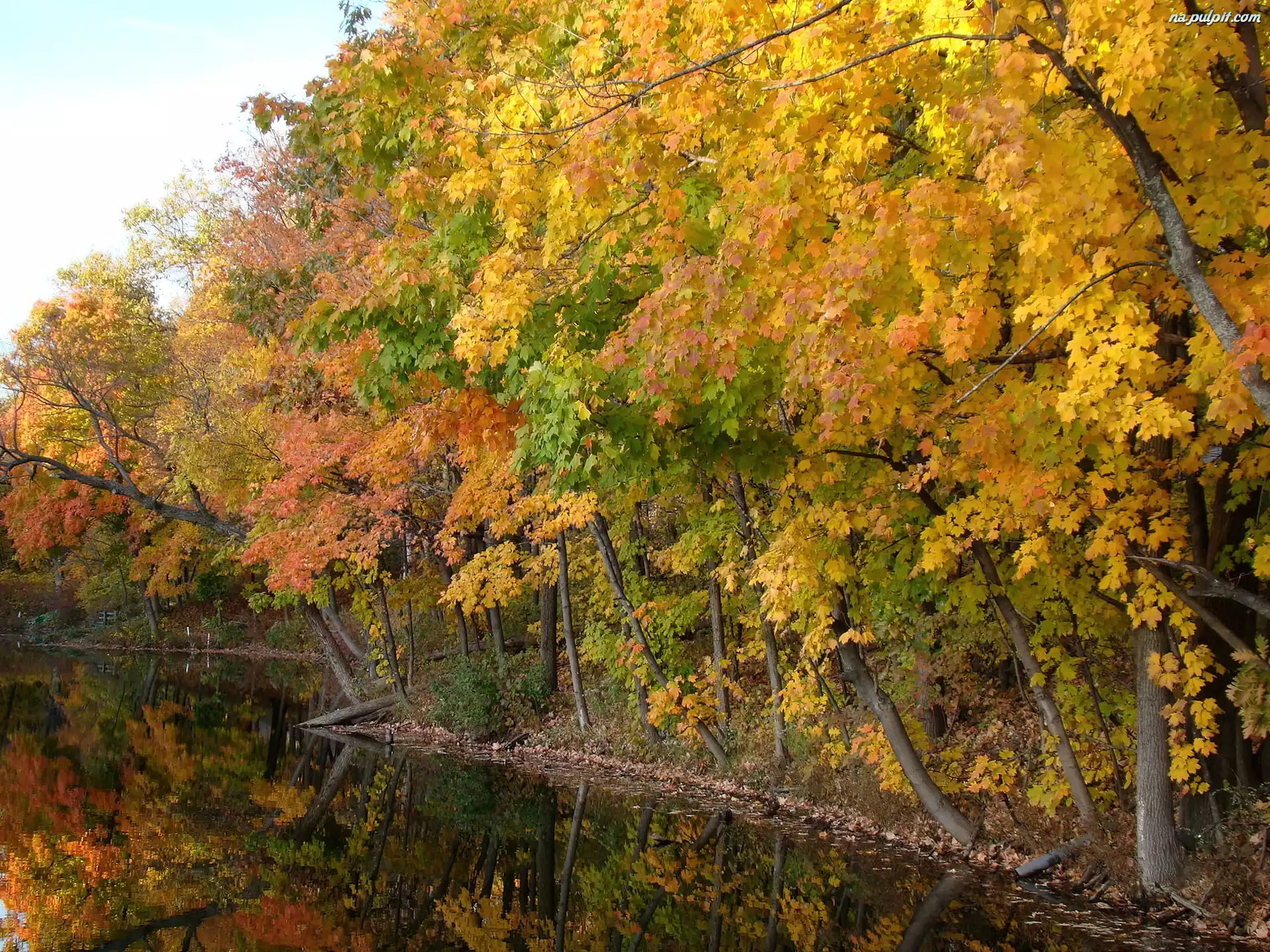 Jesień, Rzeka, Drzewa Na Pulpit