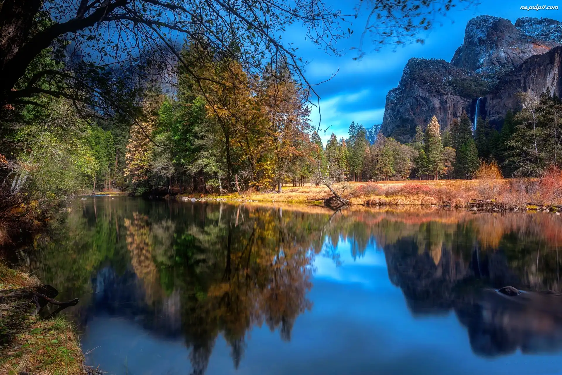 Rzeka, Drzewa, Jesień, Góry Na Pulpit