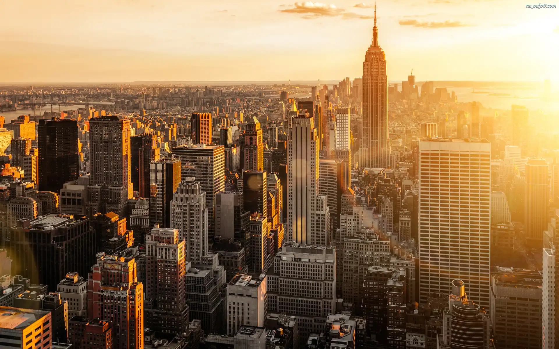 Jork, Rzeka, Nowy, Słońca, Promienie, Wieżowce, Manhattan Na Pulpit