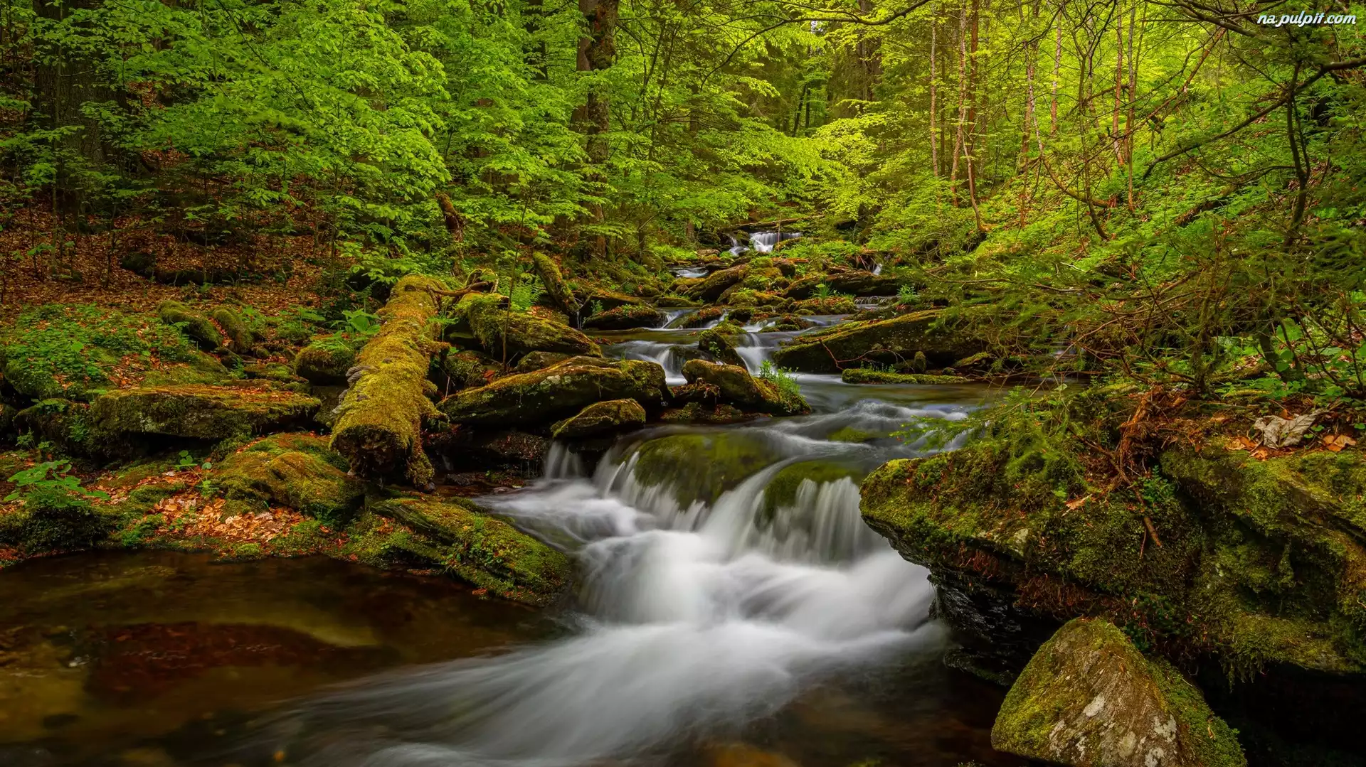 Omszone, Las, Drzewa, Rzeka, Zielone, Kamienie