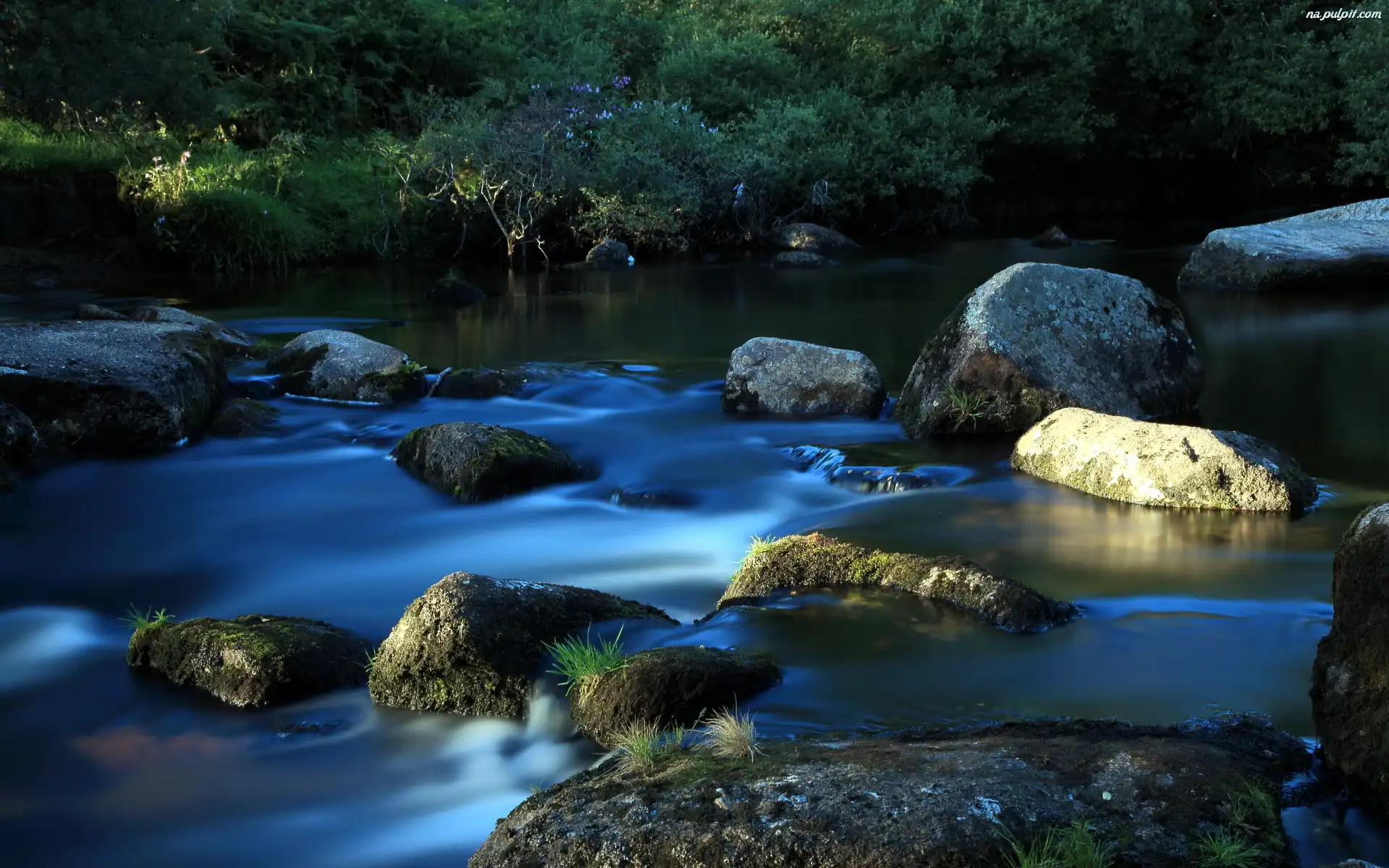 Kamienie, Rzeka, Zieleń Na Pulpit