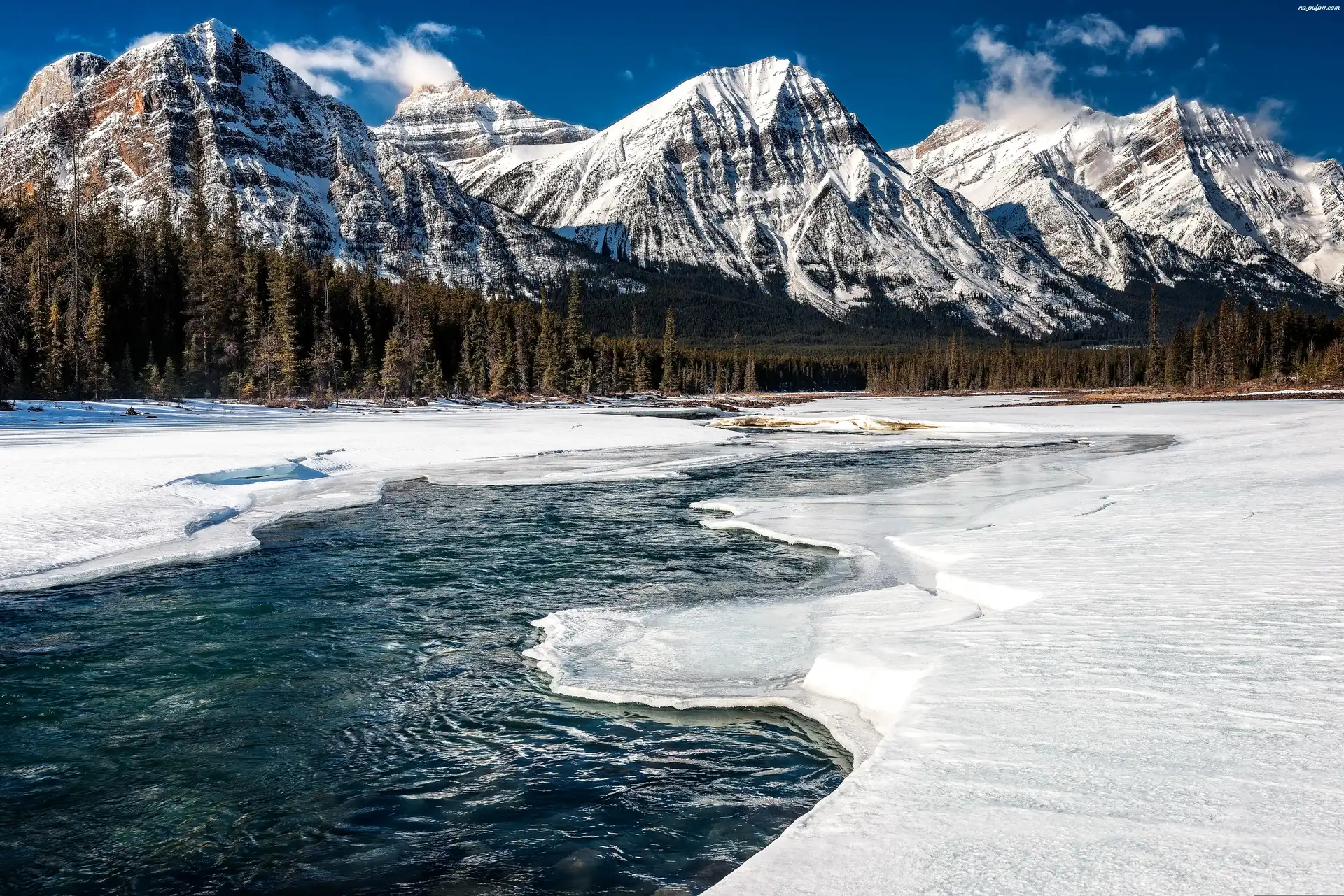 Rzeka, Góry, Kanada, Zima Na Pulpit