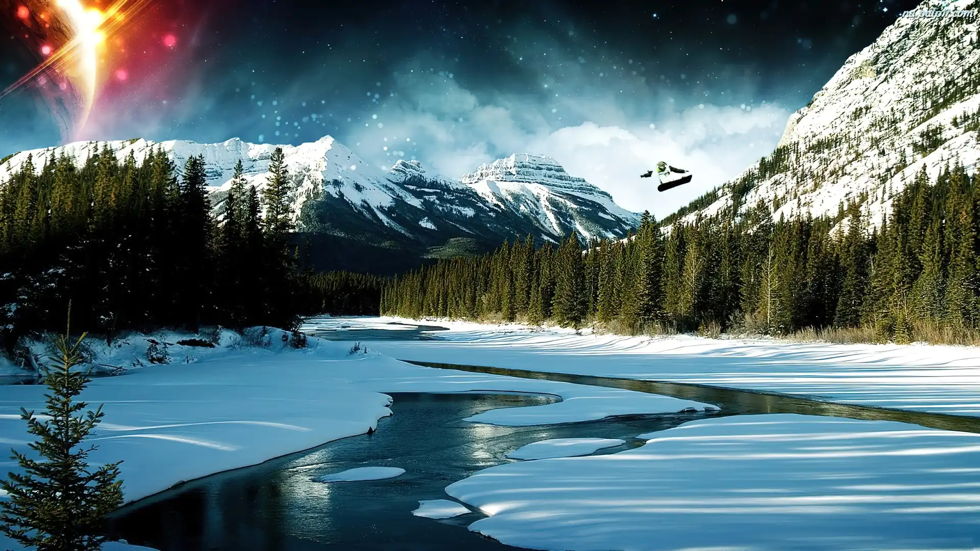 Rzeka, Zima, Krajobraz, Góry Na Pulpit