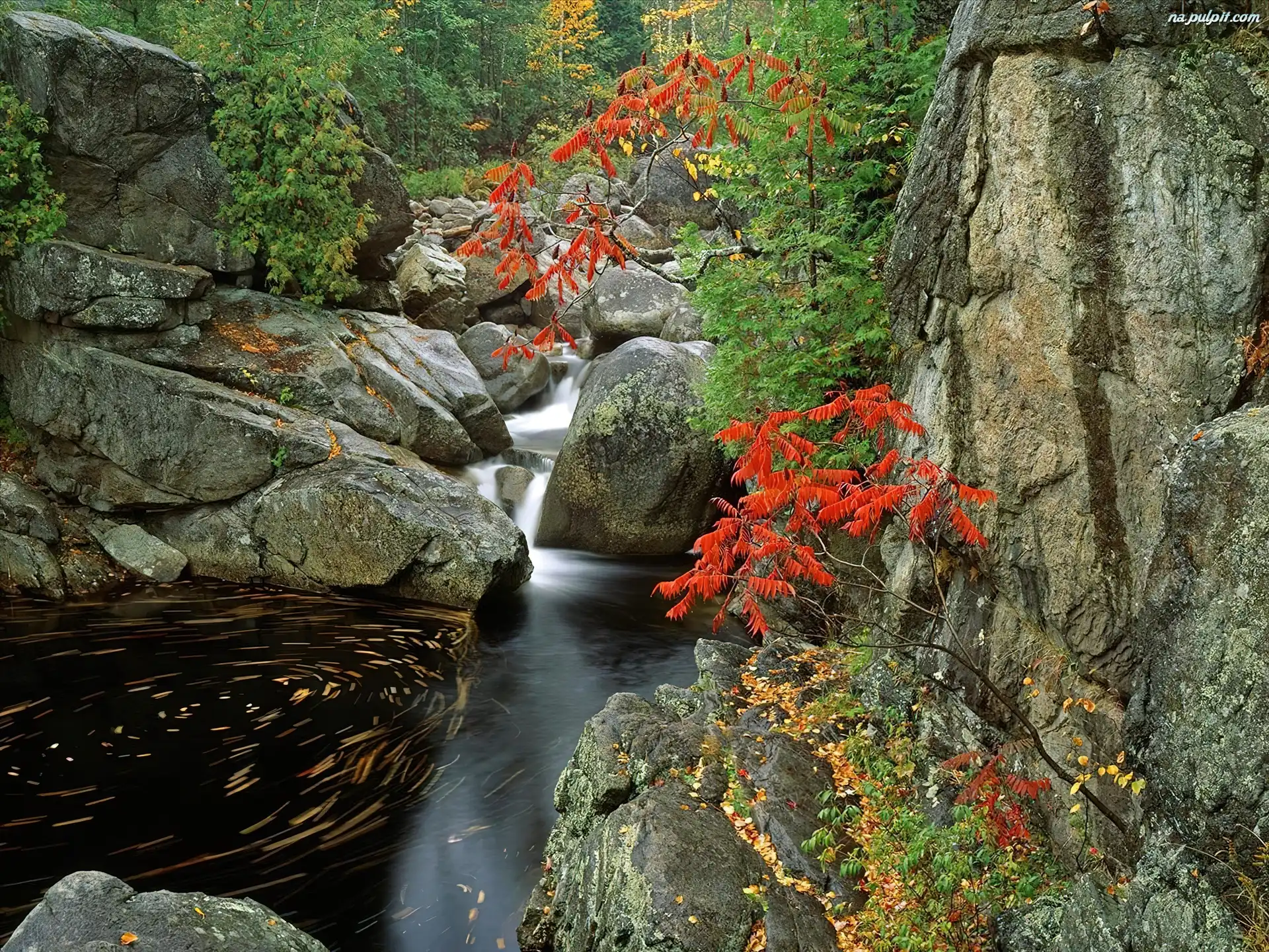 Rzeka, Drzewa, Krzewy, Kamienie Na Pulpit