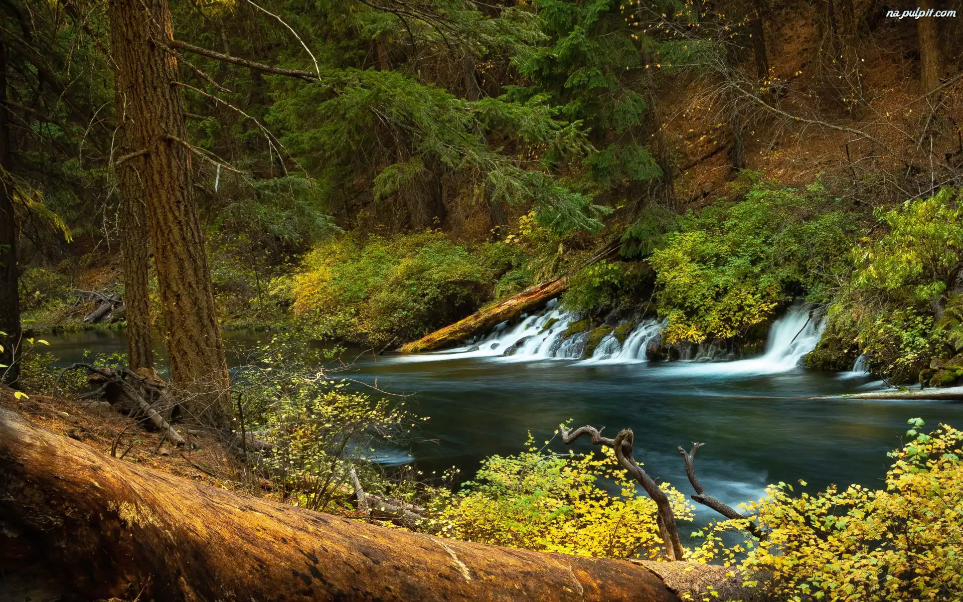 Gałęzie, Rzeka, Las, Jesień, Drzewa