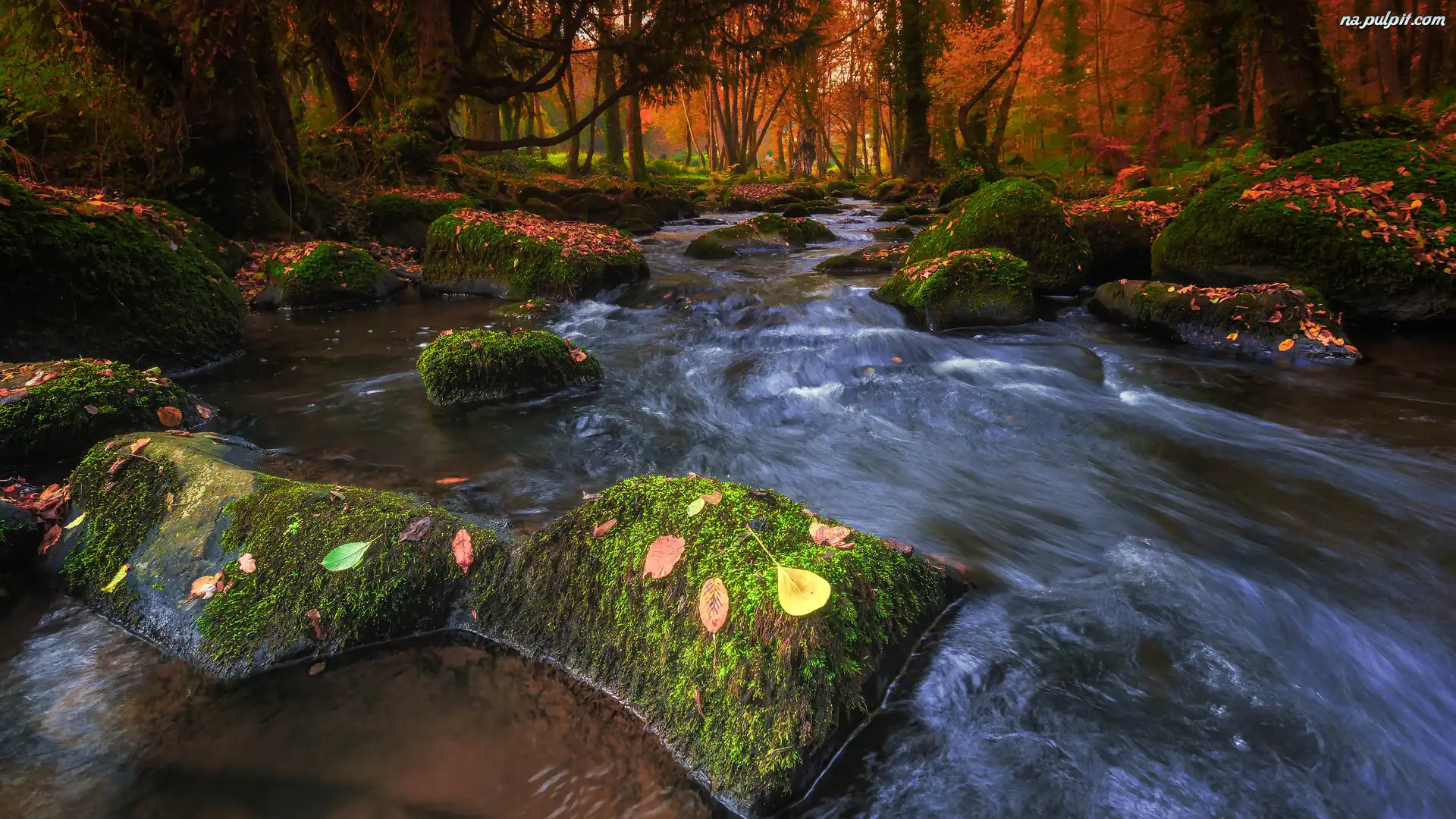 Kamienie, Bretania, Rzeka Rance, Las, Liście, Jesień, Drzewa, Francja, Rzeka Na Pulpit