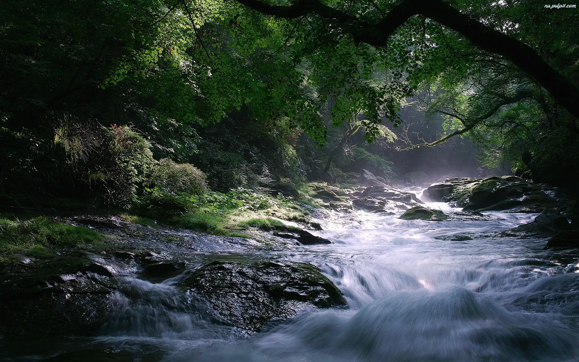 Światło, Las, Skały, Rzeka, Przebijające Na Pulpit