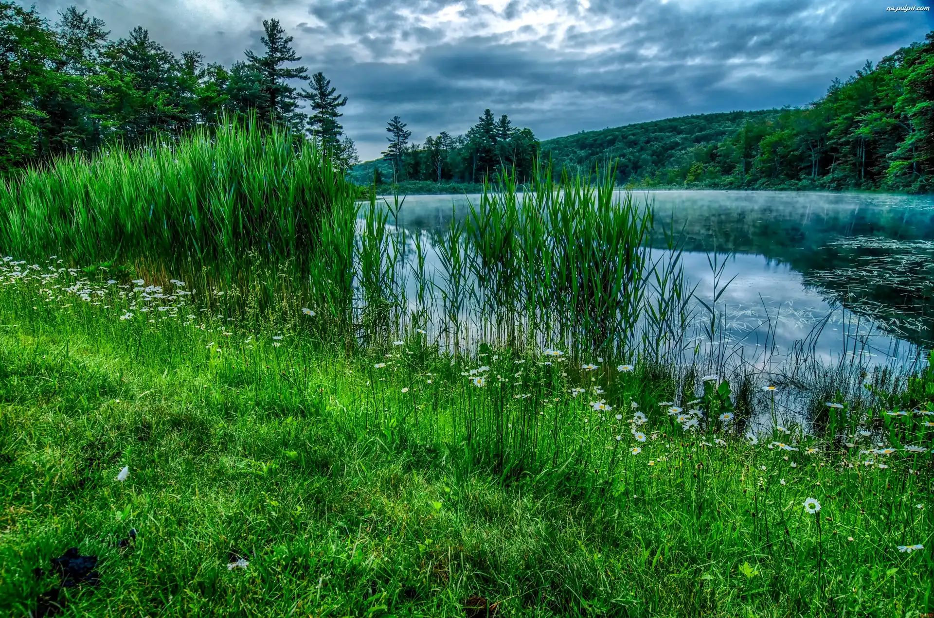 Rzeka, Las, Lato, Łąka Na Pulpit