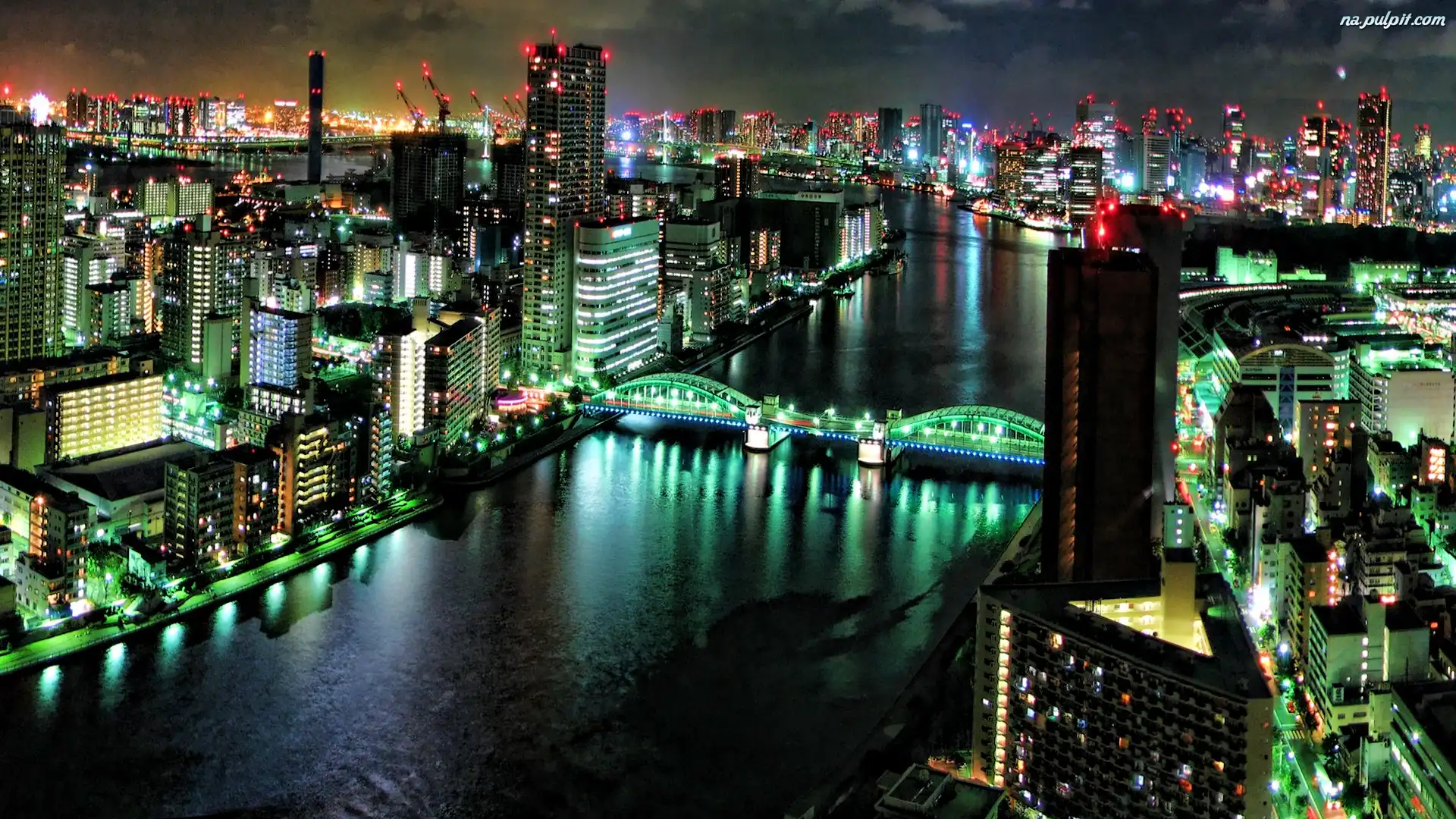 Rzeka, Noc, Miasto, Most Na Pulpit