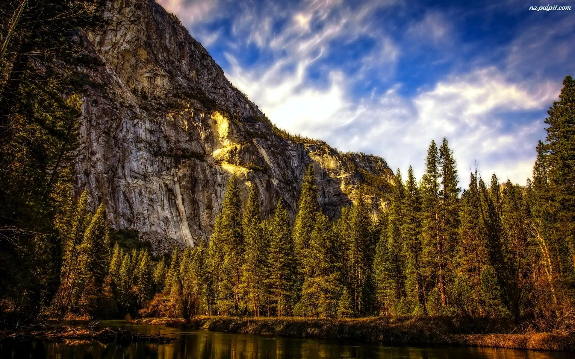 Rzeka, Góry, Niebo, Las Na Pulpit