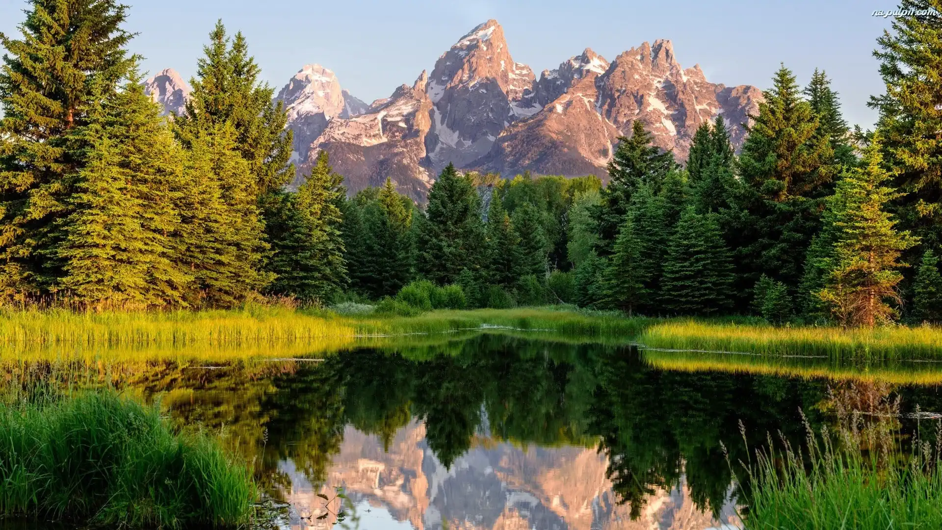 Odbicie, Stan Wyoming, Góry, Rzeka Snake River, Park Narodowy Grand Teton, Stany Zjednoczone, Las Na Pulpit |