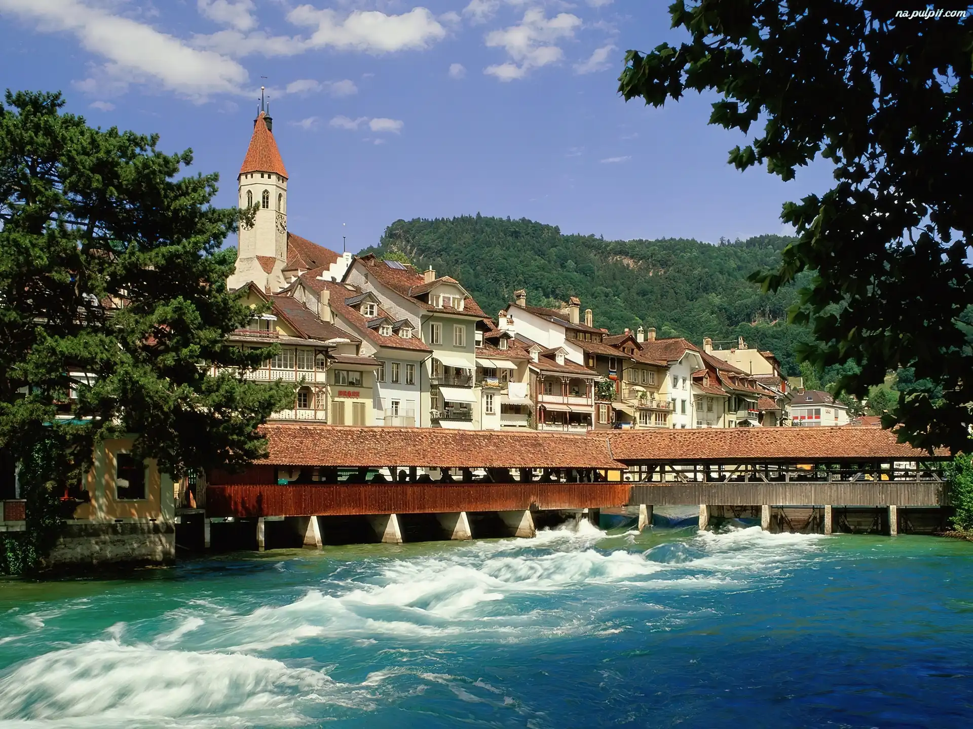 Szwajcaria, Lasy, Góry Alpy, Domy Drzewa, Szwajcaria, Lauterbrunnen, Domy miasto, Grecja, Wiatrak Góry, Droga, Kamienie, Hotel Skały, Botaniczny, Ogród, Alpinarium, Poznań Macedonia, Ochryda Plaża, Grecja, Wyspa Pieta, Michała, Rzeźba, Anioła Brandenburska, Berlin, Niemcy, Brama Park, Vufflens, Zamek Rzeka, Szwajcaria, Aarburg, Most Panorama, Miasta Grecja, Budowla Góry, Szwajcaria, Alpy