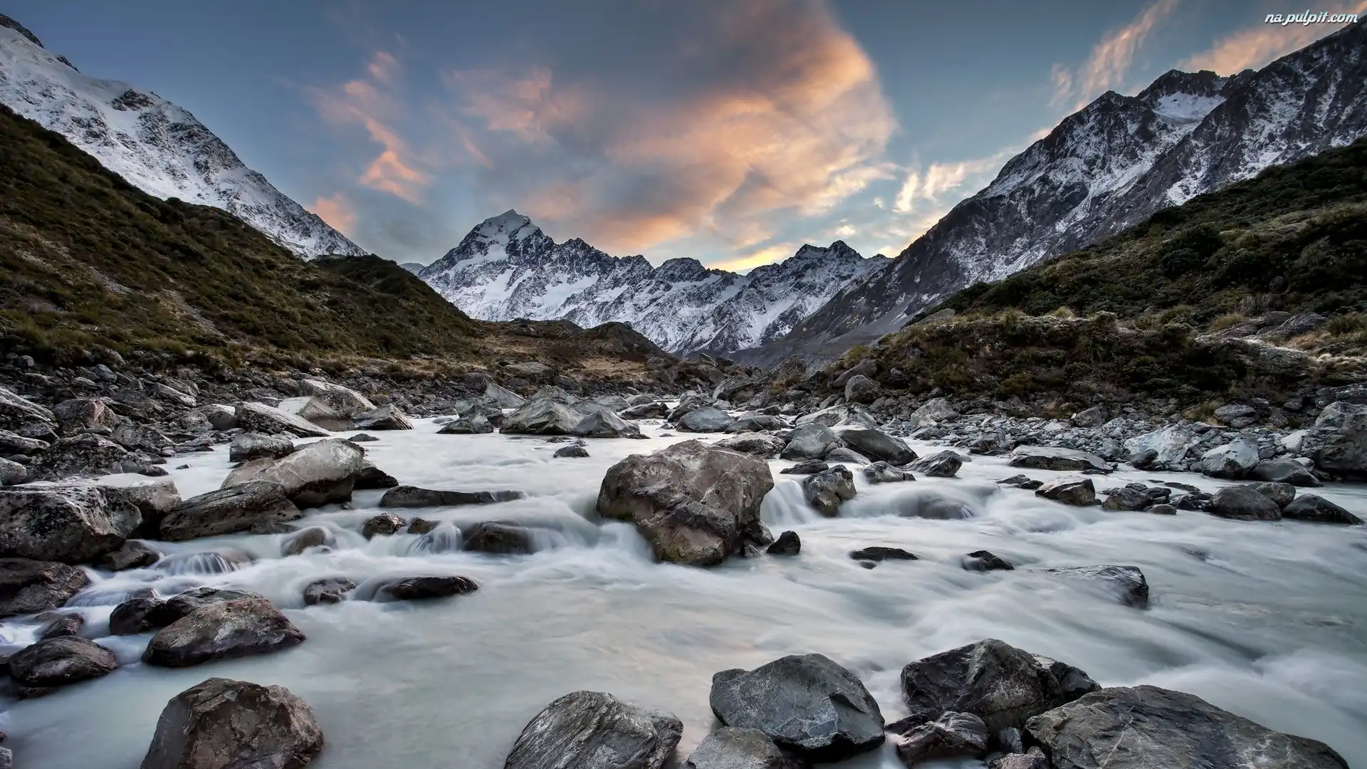 Kamienie, Góry, Park Narodowy Góry Cooka, Nowa Zelandia, Rzeka Na Pulpit