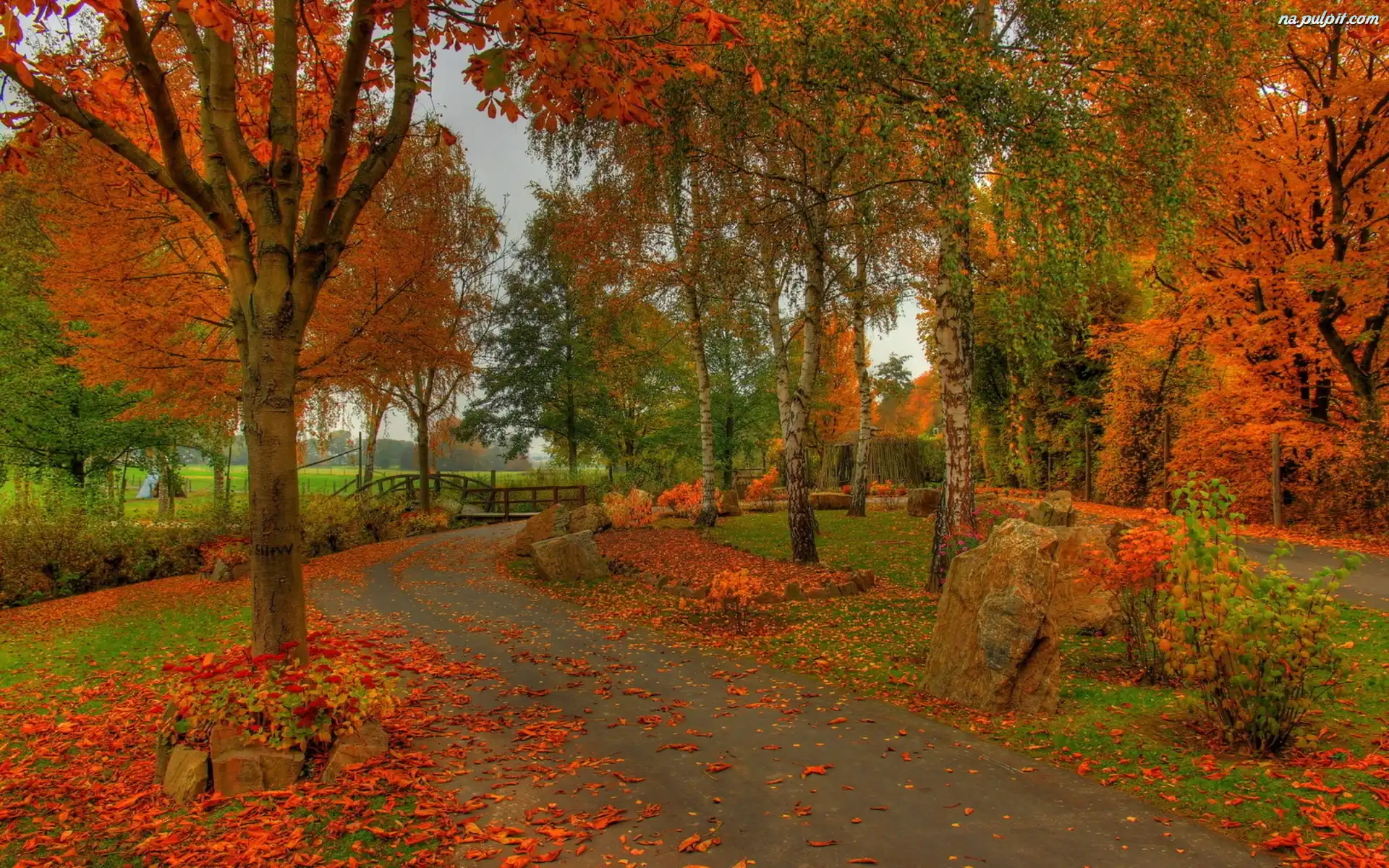 Rzeka, Liście, Jesień, Mostek, Park, Aleja Na Pulpit