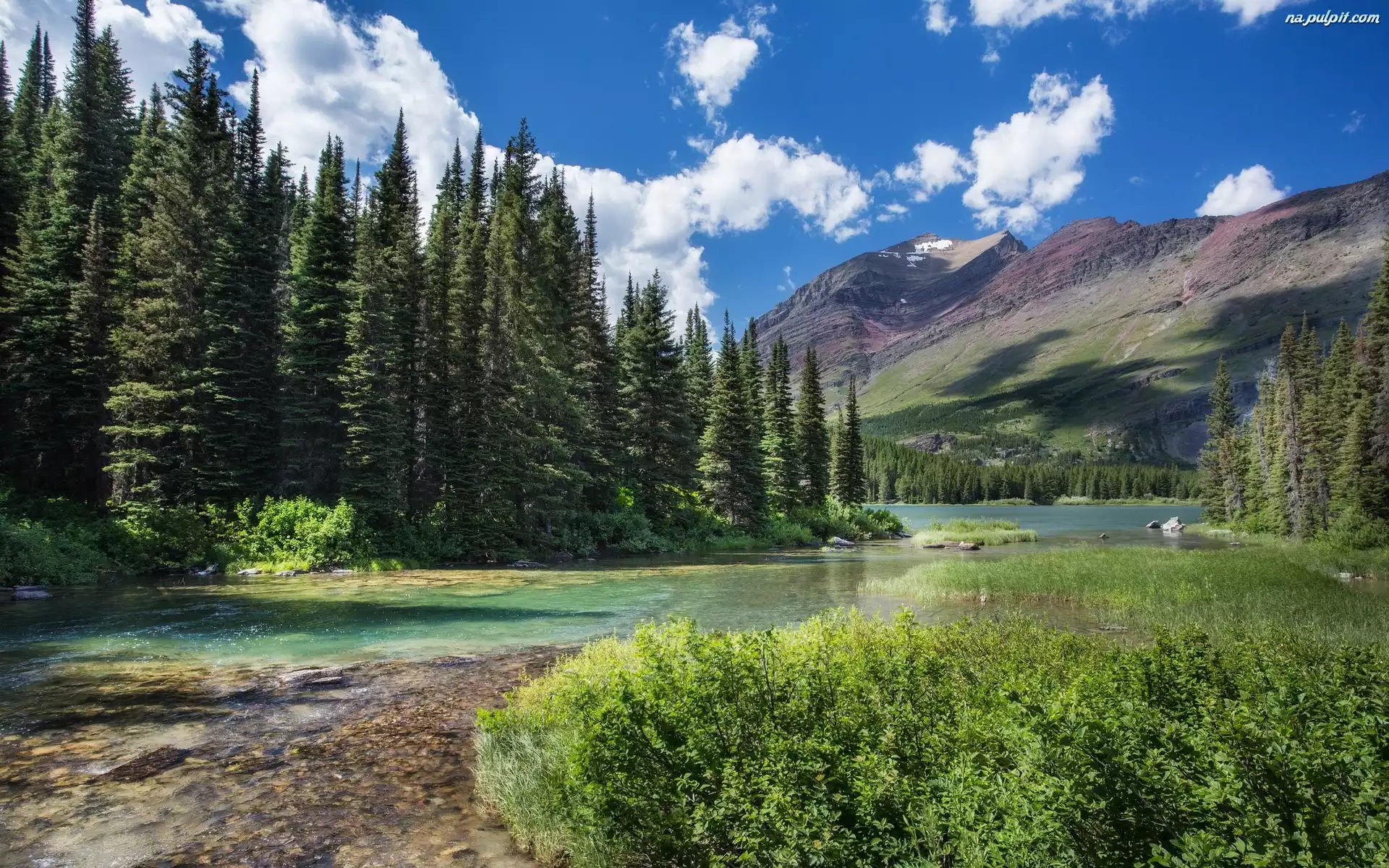 Stan Montana, Las, Góry, Park Narodowy Glacier, Stany Zjednoczone, Rzeka Na Pulpit