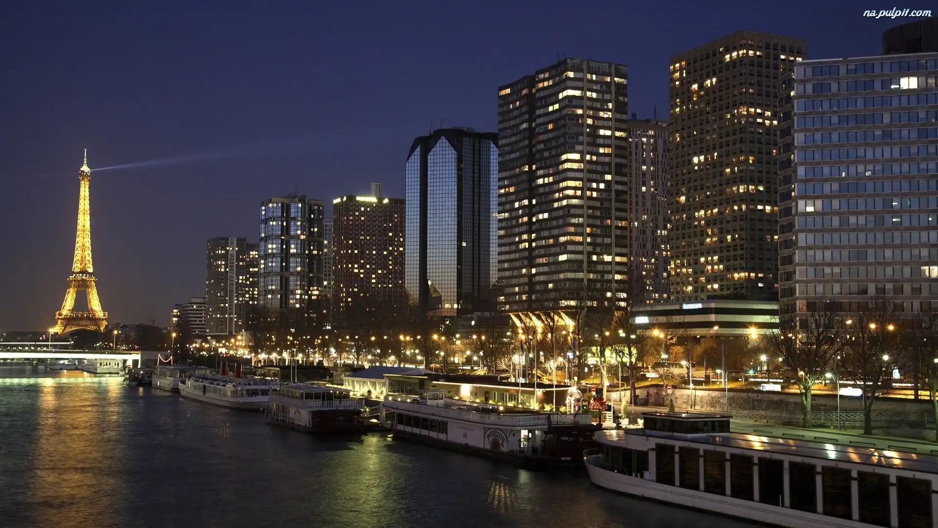 Rzeka, Wieża, Nocą, Paryż, Eiffla Na Pulpit
