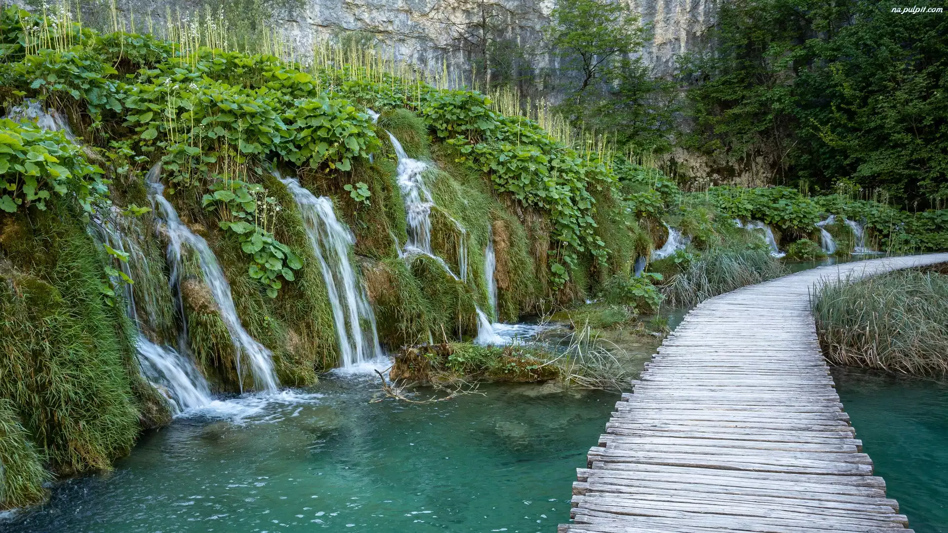 Rzeka, Chorwacja, Park Narodowy Jezior Plitwickich, Wodospady, Plitwice, Pomost Na Pulpit