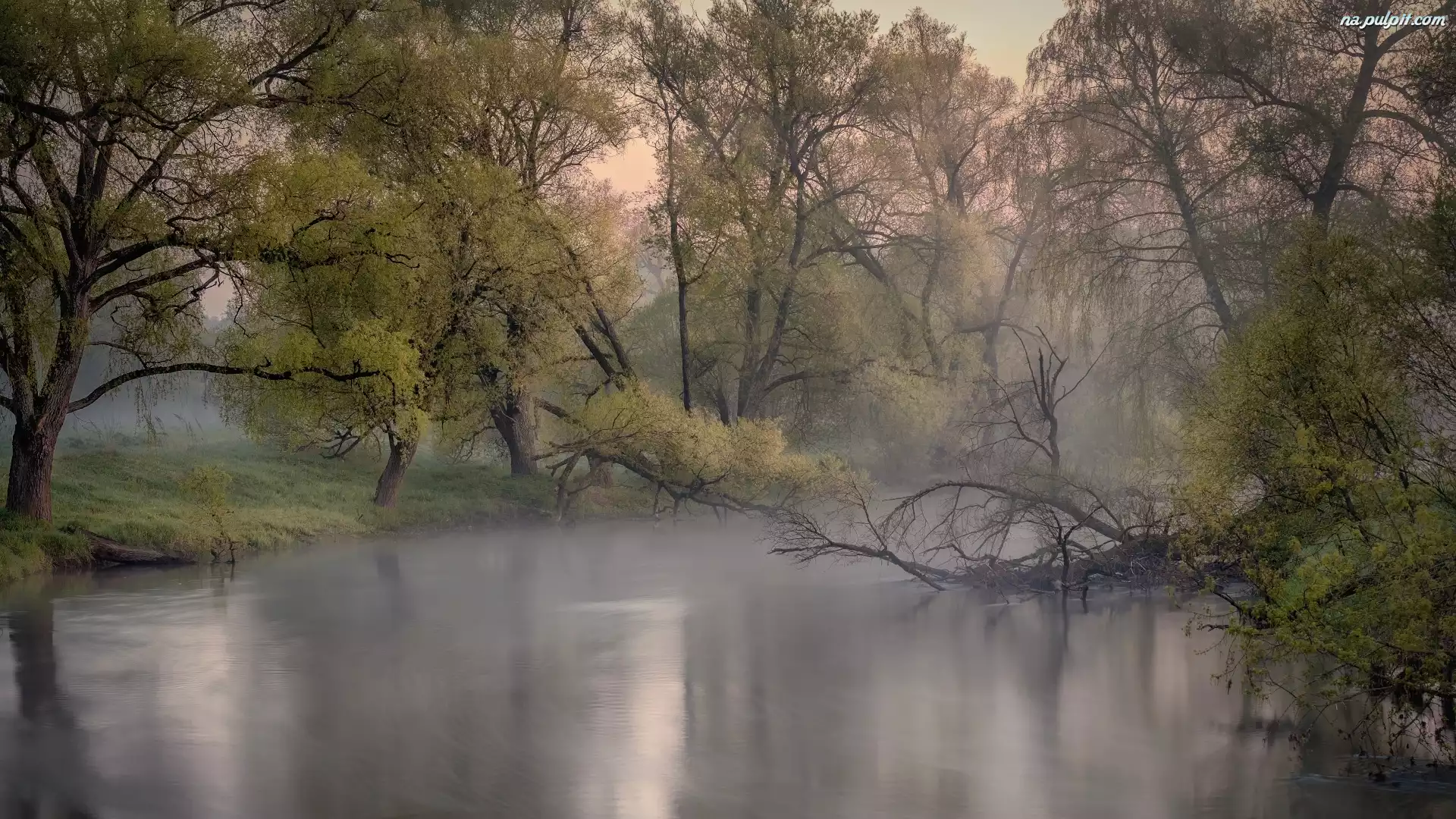Rosja, Rzeka Istra, Mgła, Drzewa, Obwód moskiewski Na Pulpit