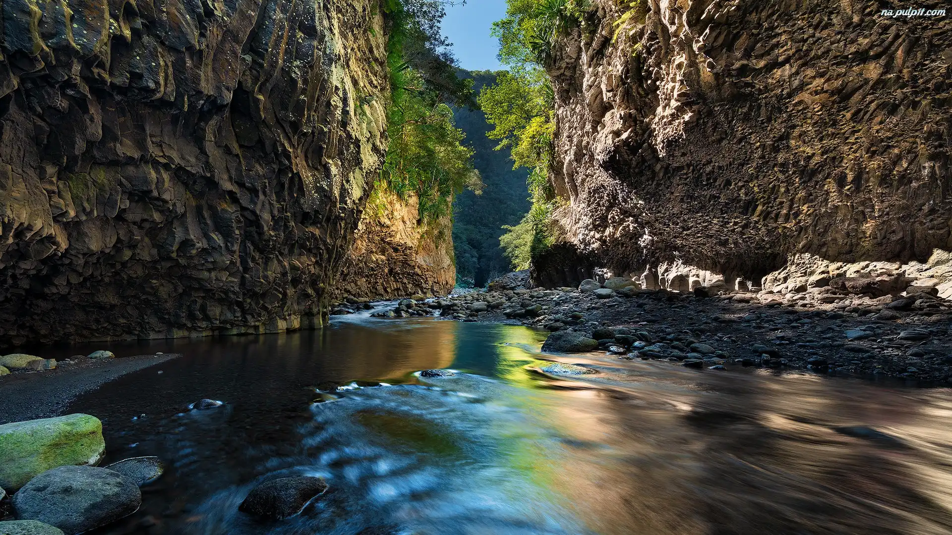 Wyspa Reunion, Skały, Rzeka, Rośliny, Wąwóz, Francja Na Pulpit