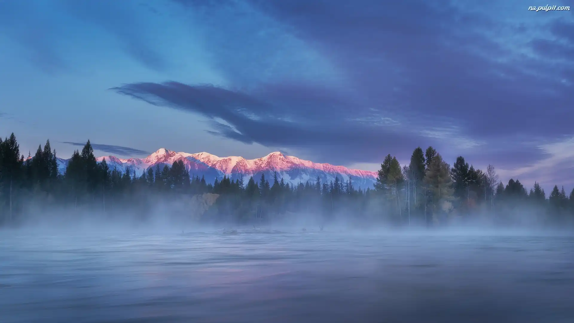 Rzeka Czuja, Kurayskaya Step, Góry Ałtaj, Republika Ałtaju, Rosja, Mgła, Step Kurai, Drzewa Na Pulpit |