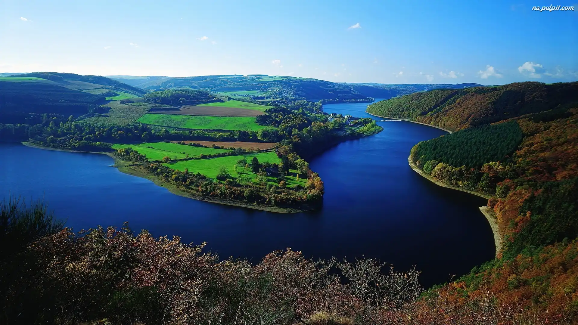 Krzewy, Rzeka, Trawa Na Pulpit
