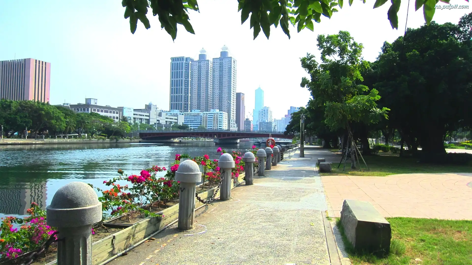 Wieżowce, Rzeka, Drzewa Na Pulpit