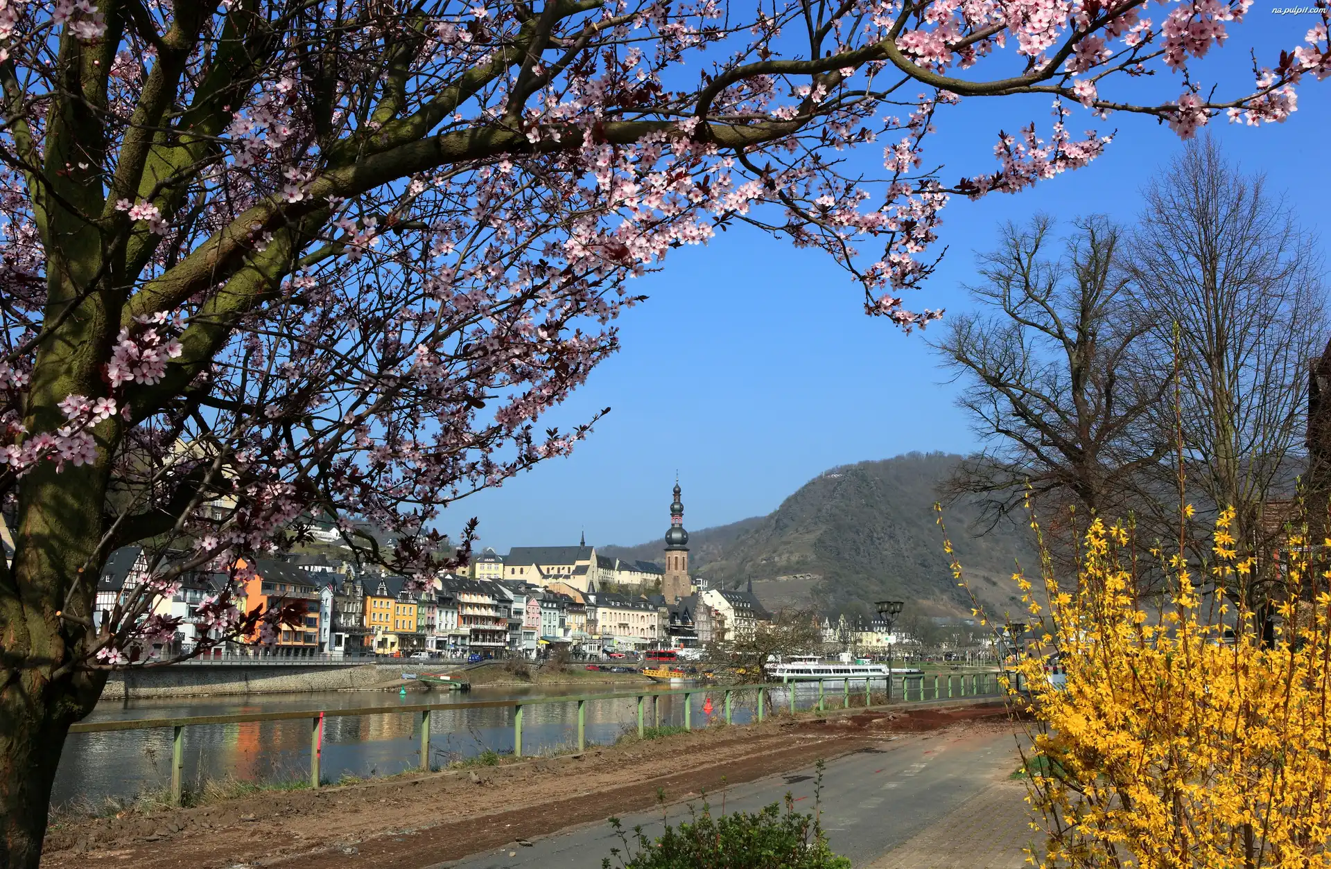 Rzeka, KwitnÄ…ce, Wiosna, Drzewo