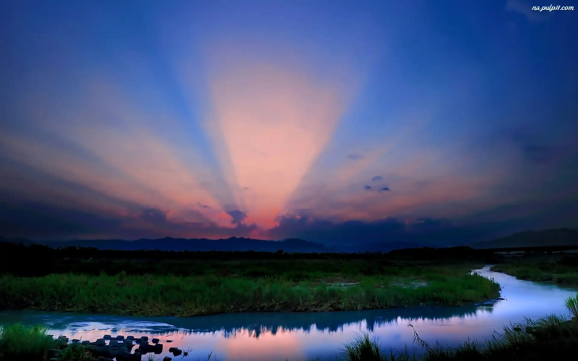 Łąka, Zachód, Rzeka, Słońca Na Pulpit