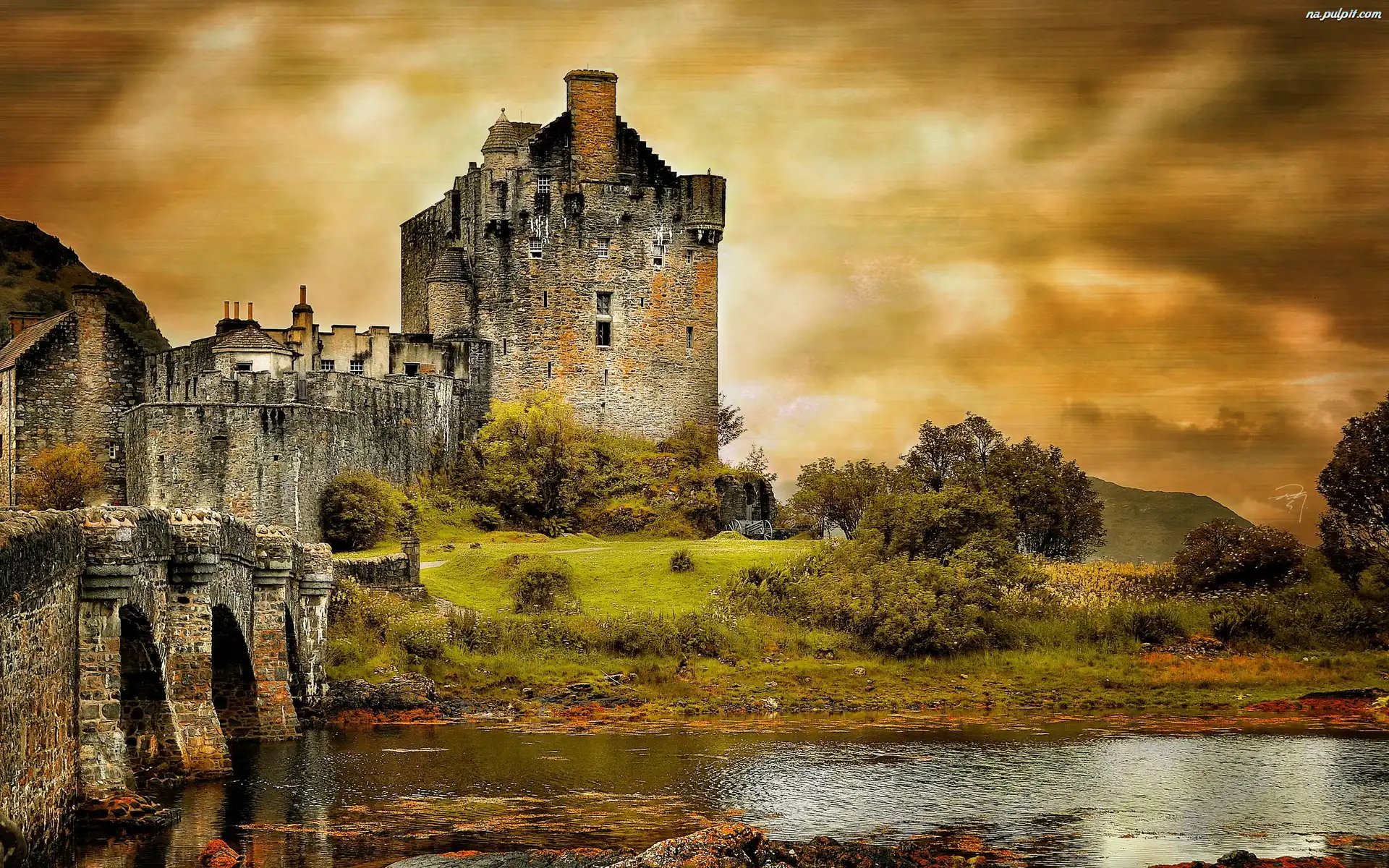 Rzeka, Słońca, Zachód, Zamek Na Pulpit